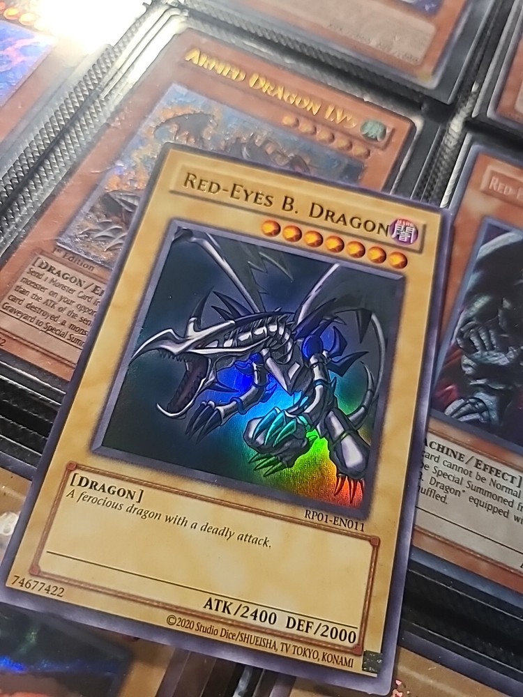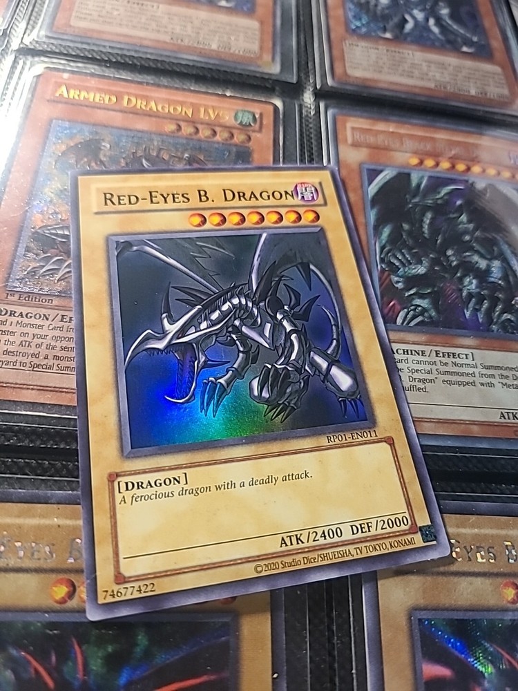 This Yu-Gi-Oh! TCG card is a must-have for any collector or player. With a stunning Ultra Rare rarity and a card number of RP01-EN011, it features a Dark attribute and a Dragon creature type. The Red-Eyes B. Dragon card has a powerful 2400 attack and 2000 defense, making it a formidable addition to any deck. This card is part of the Retro Pack set and is an Unlimited edition. It is a Normal card type and has a card name of Red-Eyes B. Dragon. Perfect for fans of the game, this card is sure to impress and provide a competitive edge in gameplay.