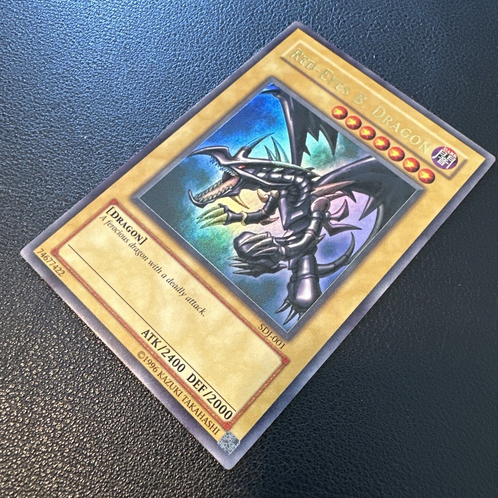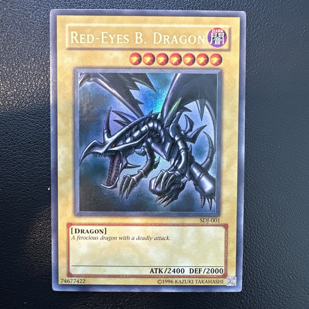 ebay AI description: This ultra-rare Yu-Gi-Oh! TCG card features the iconic Red-Eyes B. Dragon from the - Yugi - set. It bears the card number SDJ-001 and is in LP condition. If you're a collector of rare and sought-after cards, this is a must-have for your collection. The card is from the Collectible Card Games category, specifically CCG Individual Cards, and is perfect for fans of Dragons in the game. Add this fantastic card to your deck and take your game to the next level!