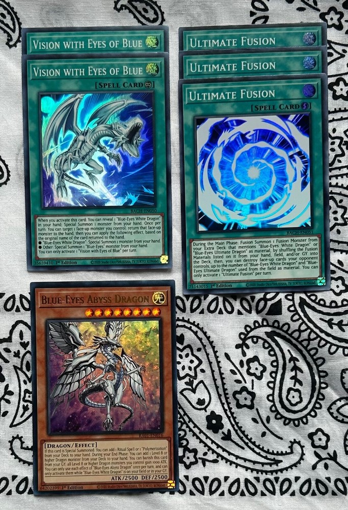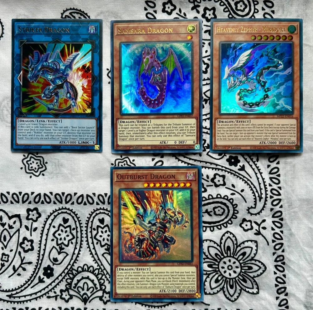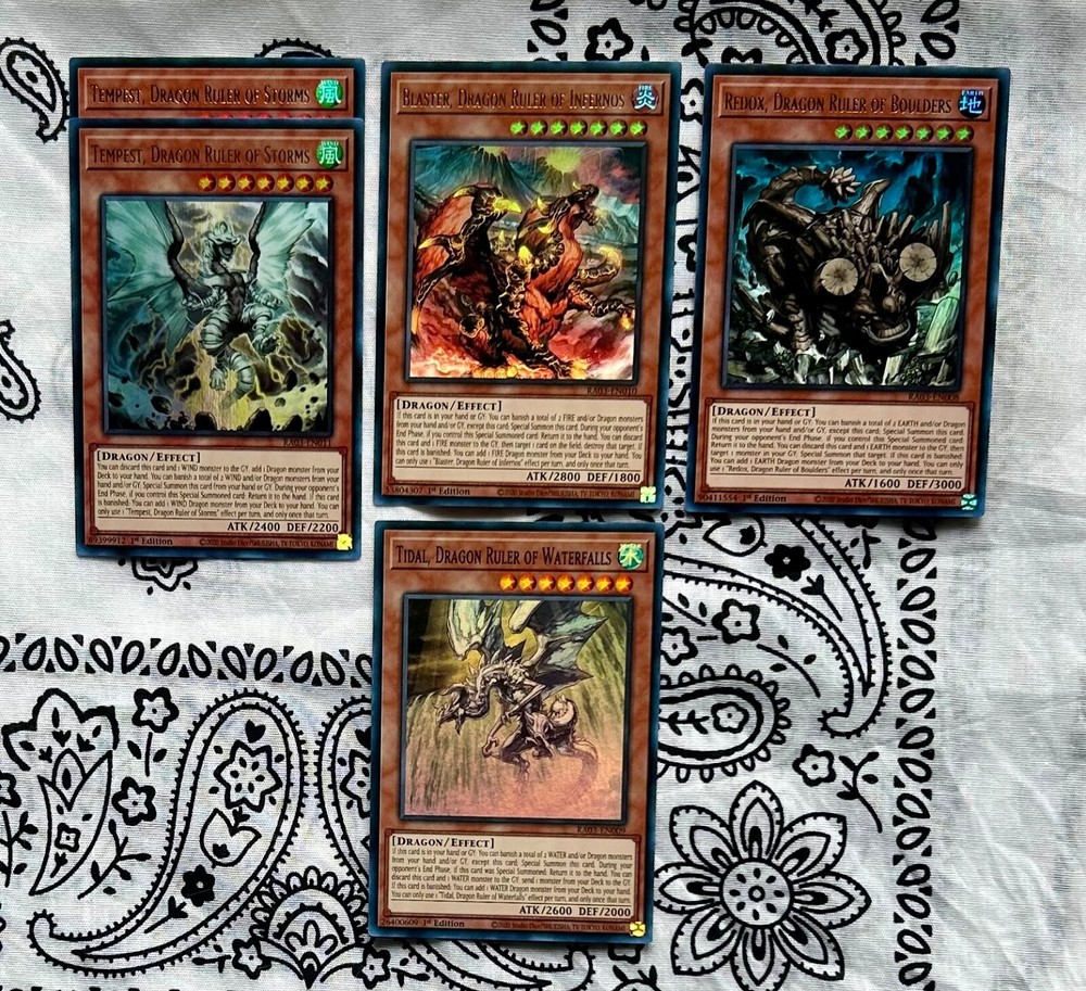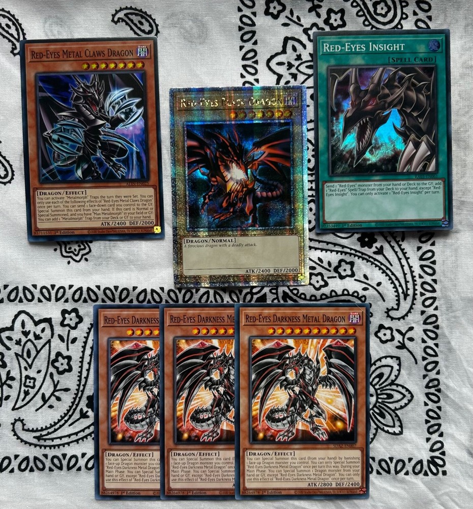 Yu-Gi-Oh! TCG Red-Eyes Black Dragon (QCSR) & Dragon Core. 🔥QCSR / PUR / RARE / SUPER / ULTRA / COMMON🔥 LCO1 / ALIN / RAO3 / SDAZ / BACH / RAO1 / CYAC / AGOV / MP22 / GFP2 -Red-Eyes Black Dragon (1) QCSR -Red-Eyes Insight (1) -Red-Eyes Metal Claw Dragon (1) -Red-Eyes Darkness Metal Dragon (3) -Red-Eyes Soul (3) -Blue-Eyes Abyss Dragon (1) -Ultimate Fusion (3) -Vision With Eyes Of Blue (2) -Tidal, Dragon Ruler Of Waterfalls (1) -Redox, Dragon Ruler Of Boulders (1) -Blaster, Dragon Ruler Of Infernos (1) -Tempest, Dragon Ruler Of Storms (2) -Ice Dragon’s Prison (2) Super -Ice Dragon’s Prison (1) PUR -Starry Dragon’s Cycle (3) -Wish Dragon (2) -Burning Dragon (3) -Lubellion The Searing Dragon (3) -Striker Dragon (1) -Samsara Dragon (1) -Outburst Dragon (1) -Heavenly Zephyr - Miradora (1)