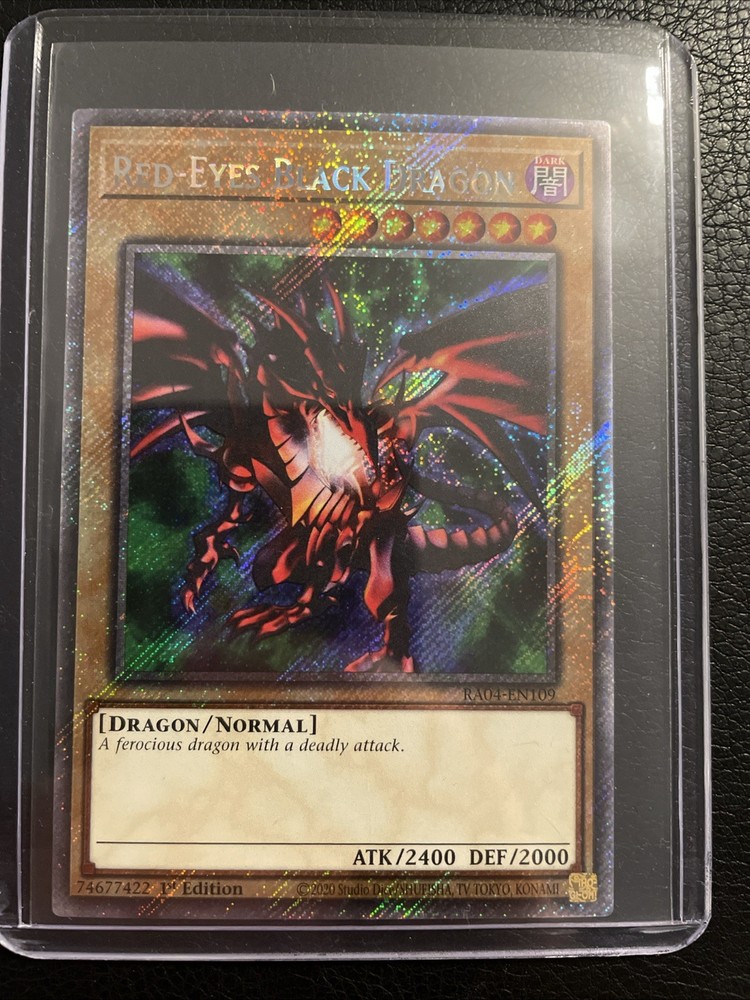 Unleash the power of the iconic Red-Eyes Black Dragon from the Legendary Collection: 25th Anniversary Edition onto your Yu-Gi-Oh! TCG opponents. This card boasts an impressive 2400 attack power and 2000 defense toughness, ensuring it can withstand fierce battles and emerge victorious. Its rarity as a Quarter Century Secret Rare makes it a coveted addition to any collection. Card number LC01-EN006, the Red-Eyes Black Dragon embodies the dark attribute synonymous with its legendary status. It's a must-have for players and collectors alike, looking to enhance their gameplay or commemorate the 25th anniversary of the Yu-Gi-Oh! trading card game. Add this legendary creature to your deck and intimidate your rivals with its sheer strength.