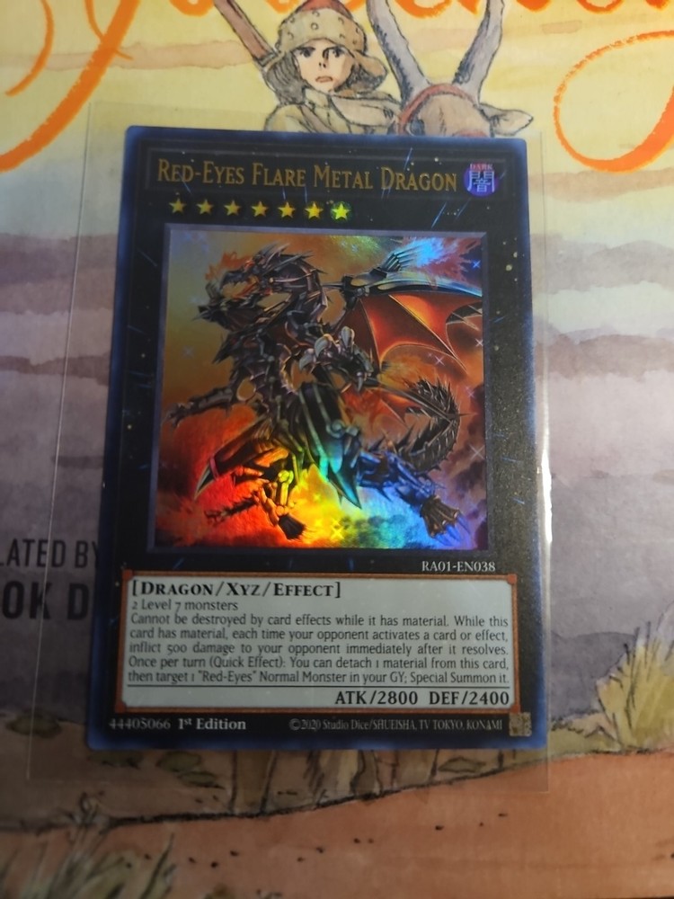 This Yu-Gi-Oh! TCG card is a must-have for any collector or player. With its Ultra Rare rarity and 1st Edition status, the Red-Eyes Flare Metal Dragon card is a valuable addition to any collection. The card features an Effect Xyz type and the card number RA01-EN038. This card is part of the 25th Anniversary Rarity Collection set and is perfect for anyone looking to complete their collection or enhance their deck. Don't miss out on the opportunity to own this rare and sought-after card.