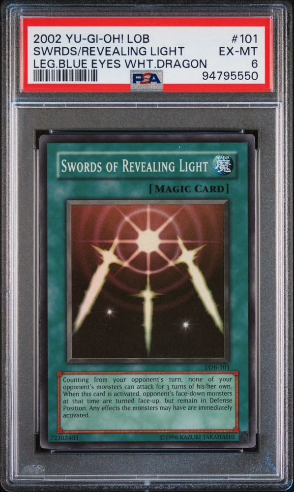 Enhance your Yu-Gi-Oh! TCG collection with the legendary "Swords of Revealing Light" from the iconic Legend of Blue Eyes White Dragon set. This Super Rare spell card, numbered LOB-101, is a must-have for both serious collectors and seasoned duelists. The card's Unlimited feature ensures it retains its prestige and functionality in both casual and competitive play. Belonging to the esteemed 'Legend' speciality, the card depicts a powerful Light Dragon, adding a mythological edge to your deck. Its unique attributes make it a standout piece, and the spell card's lore ties it to the rich legacy of the Yu-Gi-Oh! universe. With its rarity and significance, "Swords of Revealing Light" is a worthy addition to any collection.