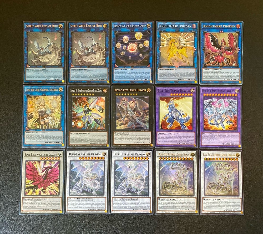 This Blue-Eyes White Dragon deck is absolutely amazing—perfect for competitive play! The cards are in near-mint condition, and the extra deck is stacked with powerful ultras and supers like Neo Blue-Eyes Ultimate Dragon and Knightmare Unicorn. It’s a dream for Kaiba fans and tournament players alike. Highly recommended!