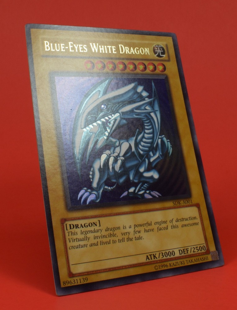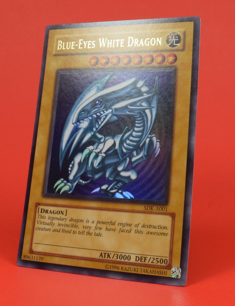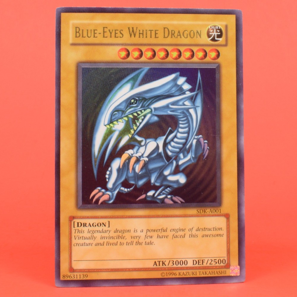 Up for sale is a Yu-Gi-Oh SDK-A001 Blue Eyes White Dragon, this card comes in played shape as shown in the photos above making it perfect for any fan of the YuGiOhTCG. The pictures above are of the actual item you will be receiving and will be shipped with tracking info in a sleeve and top-loader so if you have any questions please ask. Item comes from a smoke and animal free environment. International Shipping: Shipping for overseas as well as outside of the U.S. are calculated based upon ebay's current system and are applicable for combined shipping with all cards beyond the first shipping for free (you pay one flat shipping cost, no matter how many cards).