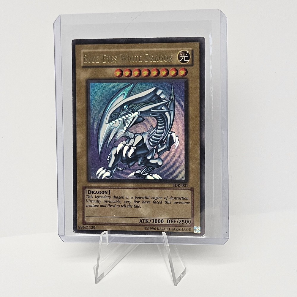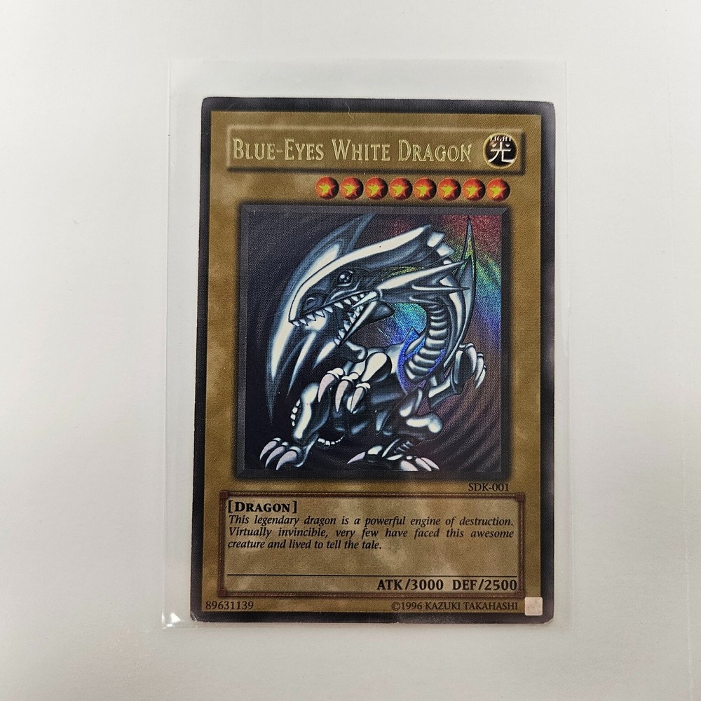 For a lot of veteran duelists this is where it all started! With what might be the most iconic Blue-Eyes White Dragon artwork ever, the original Strater Deck Ultra Rare was later reissued as a Premium Gold Rare in Maximum Gold, and a Ghost Rare in Ghosts From the Past: The 2nd Haunting. Condition is represented in the pics so please look closely for details.