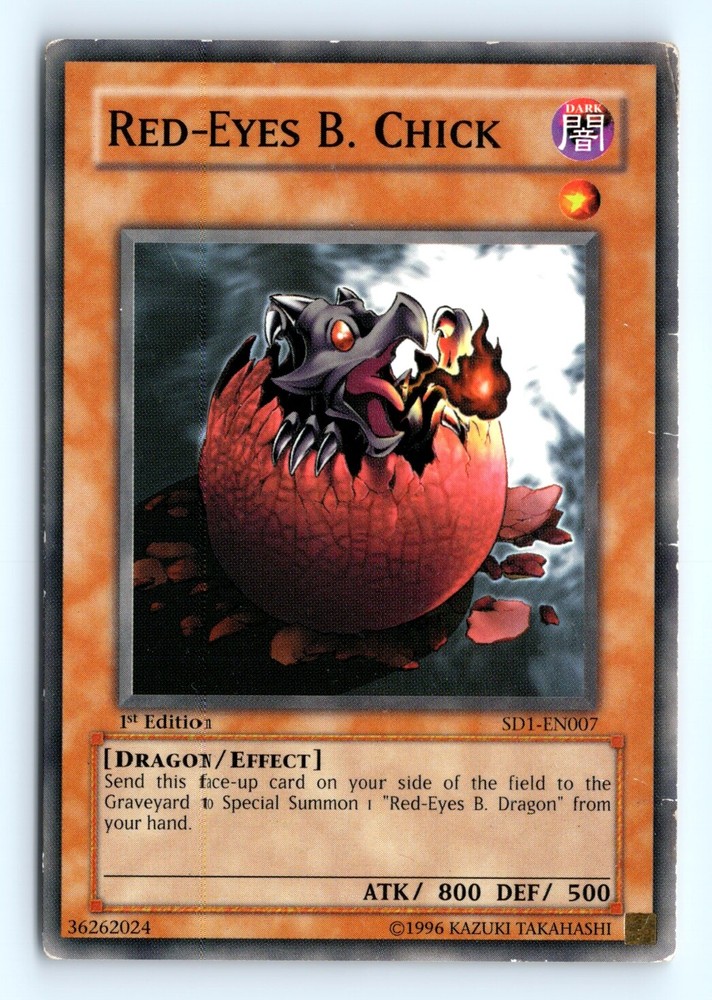 This is a nice example of a Structure Deck: Dragon's Roar #SD1-EN007 Red-Eyes B. Chick Other important information about this card: In 0 Red-Eyes B. Chick played for the . Please check out our other listings for more great cards.