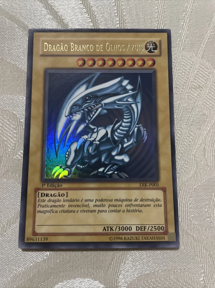 For Yu-Gi-Oh! TCG fans, we bring you the Dragao Branco de Olhos Azuis NM (1st Edition) DIK-P001 Ultra Rare Card, a highly coveted collectible card. The card is in ungraded condition but is like new, ready for play. This Portuguese language card features a Light-colored dragon with amazing features that make it stand out among other creatures. Its rarity as an Ultra Rare and 1st Edition card further adds to its value. Manufactured by Konami, this Monster Card Type is ideal for avid collectors. Add to your collection or delight a Yu-Gi-Oh! enthusiast with this rare find.