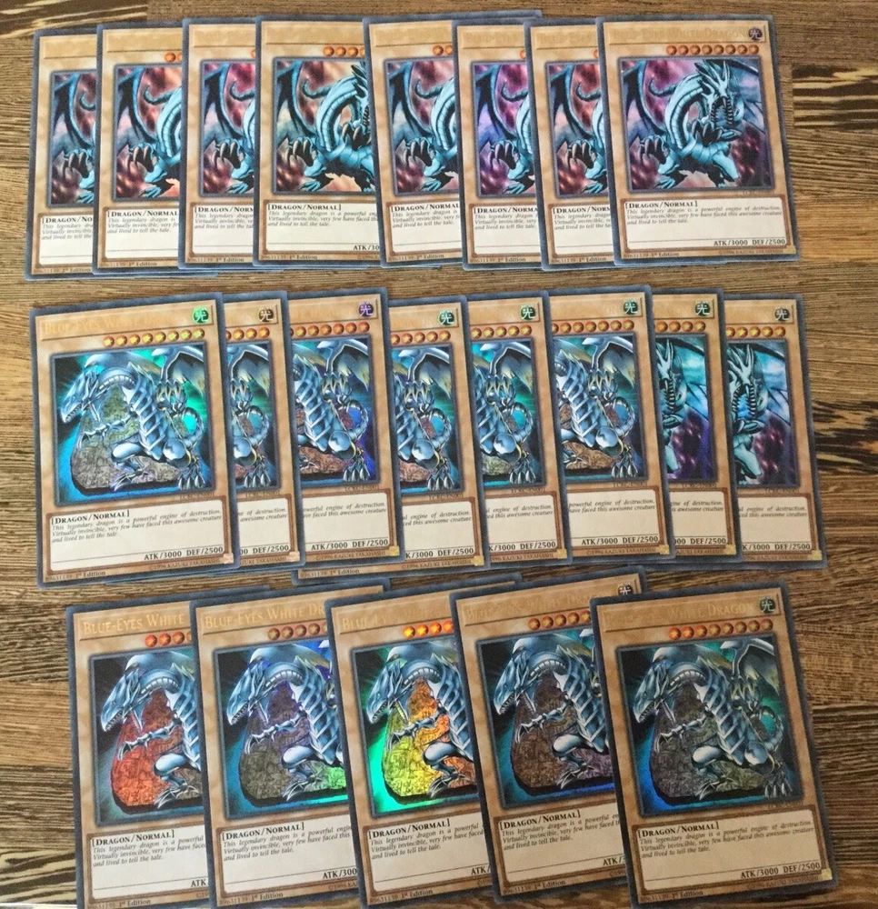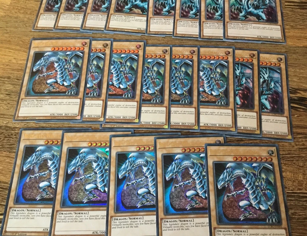 Listing Template 2018 Home About Us Shipping Returns View Feedback Contact Us Yugioh 200 Cards Bundle Joblot 20 Rares 20 Holos x1 BLUE-EYES WHITE DRAGON HOLO Yugioh 200 Cards Bundle Joblot Collection. Includes 20 Holos Super Ultra and 1 Blue-Eyes White Dragon. Sealed in a Blue-Eyes Branded Presentation Box. You will receive the following cards in your bundle: 160 Common Cards 20 Silver Rares 20 Holographic cards ranging from Super Rare, Ultra rare, Secret rare, Platinum Rare, Gold Rare and more! 1x Holographic Blue-Eyes White Dragon Sealed in individual bags and in a Blue-Eyes White Dragon branded presentation box. All cards are from a variety of sets ranging to older sets from the 2010 era’s all the way up to the newest releases, giving you a variety of cards to experience the game as it was and how it is now! Thanks for looking! If you have any more questions please let me know! Thanks for viewing! Please check out our eBay store for more cards and don’t forget to use our promotional offers to save money on multiple items! We offer COMBINED INTERNATIONAL SHIPPING! Please contact us and ask us to combine multiple cards in your shipment to save on postage costs! International tracking is included on all orders over £40. If you require a tracking code under this amount it is an additional charge of £6.50. Please add this to your order or contact us for more information. We provide postage free in the UK! All of our single cards are sleeved, with a taped Toploader to ensure maximum protection, and the best overall condition of your cards! Combined orders may in the same sleeve, unless requested otherwise. Do you want to earn extra cash for your old cards? Clear out your binder and send us photos of what you have! We will happily send you an offer and sort out postage to make it hassle free. There's no harm in trying! Message us now! Free UK Delivery! Honest Sellers. We take care of the cards so you can worry less about the fuss and more about winning, competing and collecting. About Us We started selling collectable cards over 6 years ago after selling off our own childhood Yu-Gi-Oh collection. We then rediscovered our passion for trading card games. Ever since, my brother and I have been trying to ensure that we provide a range of cards within the fastest possible time to ensure you can build your collection as you’d like it! With over 35,000 positive feedback we strive for quality customer service, aiming to give the service that we would like to receive and stock a huge inventory of new and vintage collectable cards from popular games such as Yu-Gi-Oh and Pokemon so there’s something for everyone! Our goal is that we hope to build a collectable card community as passionate about collectable cards as we are! Contact Us The best way to get in contact is through eBay’s ‘contact seller’ button where we’ll try to get back to you as soon as possible. Feedback We always prioritise your buying experience so you can shop without worry. Contact us if there’s any part of an order you were dissatisfied with as we hope to resolve any issues as soon as possible. Buy with confidence. View Our Categories