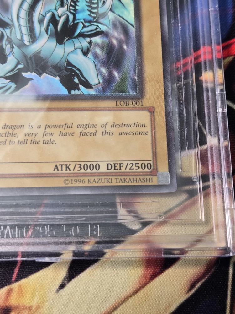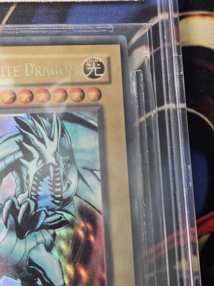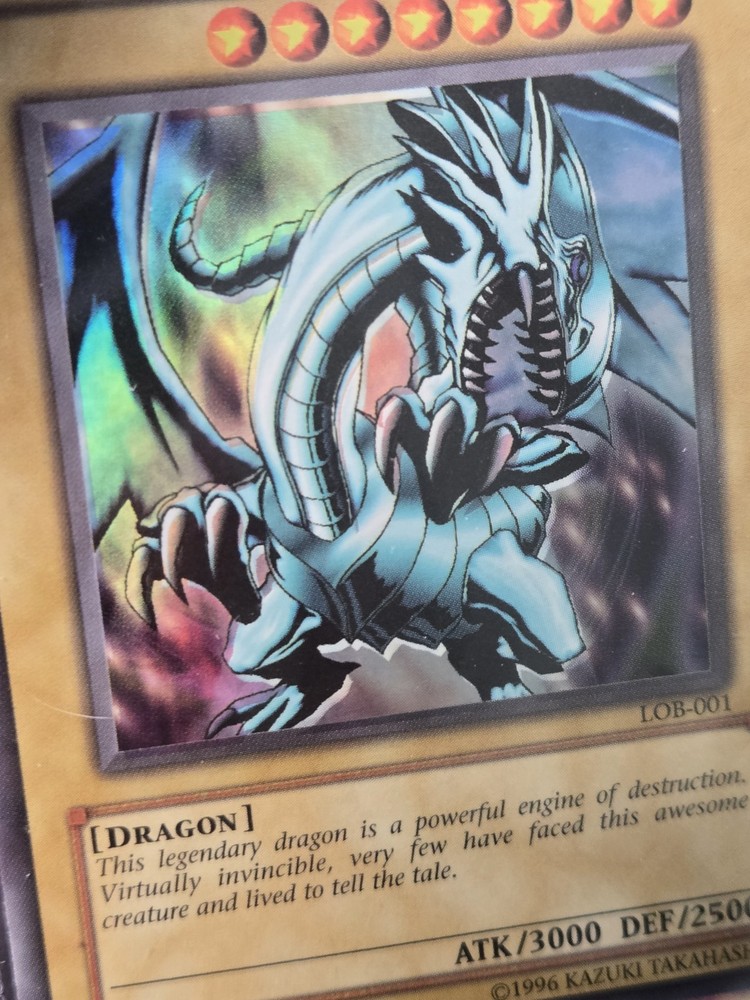 Elevate your Yu-Gi-Oh! TCG collection with the iconic Blue Eyes White Dragon card, featuring the sought-after foil shift misprint. A true gem from the original 2002 print, this card boasts a striking blue and white color scheme, encapsulating the essence of powerful, majestic dragons in a stunning visual representation. The card's misprinted foil finish adds an unique twist to its already impressive design, making it a must-have for collectors and duelists alike. With its intricate details and captivating appearance, this Blue Eyes White Dragon card is a standout piece that will shine in any collection or during the heat of battle.