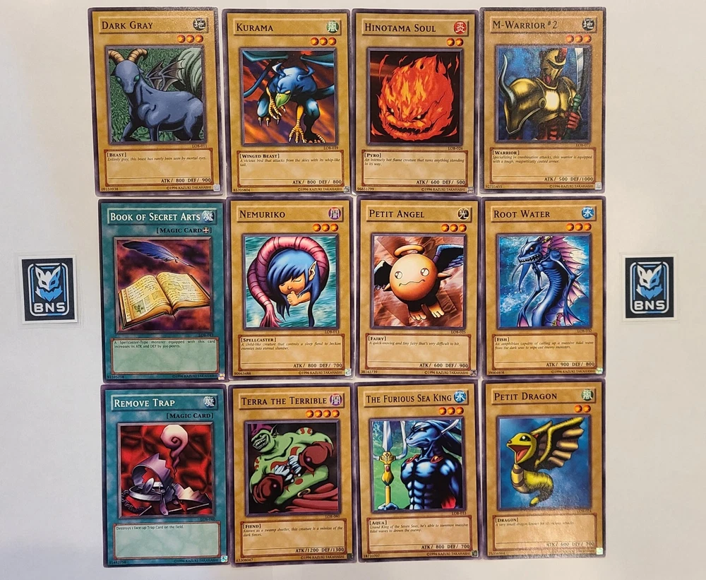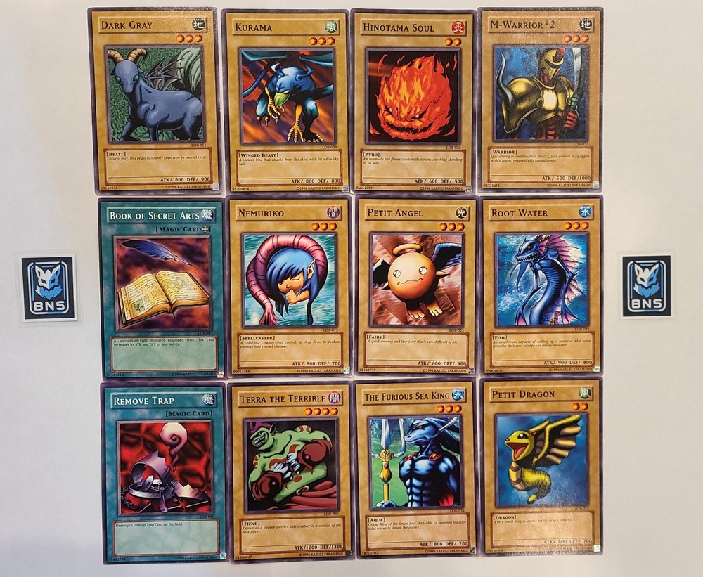 This listing is for a 12-card lot of Yugioh cards from the 2002 Legend of Blue Eyes White Dragon (LOB) set. The cards are unlimited commons, mostly in LP (Lightly Played) with one or two possibly erring towards MP (Moderately Played). If you purchase one quantity of this listing you will receive the following cards: 1x LOB-011 1x LOB-013 1x LOB-024 1x LOB-025 1x LOB-026 1x LOB-032 1x LOB-033 1x LOB-039 1x LOB-043 1x LOB-060 1x LOB-077 1x LOB-080 I have a few of this lot to sell, so you may not receive the exact cards shown in the picture, but the cards you receive will generally be in the same condition as the ones pictured (i.e. mostly LP, with one or two possibly erring towards MP). Additional photos of the exact cards are available upon request. The cards will ship in a bubble mailer, with cardboard and additional bubble wrap inside for protection during shipping. Please feel free to reach out to me for any additional information! Thank you!