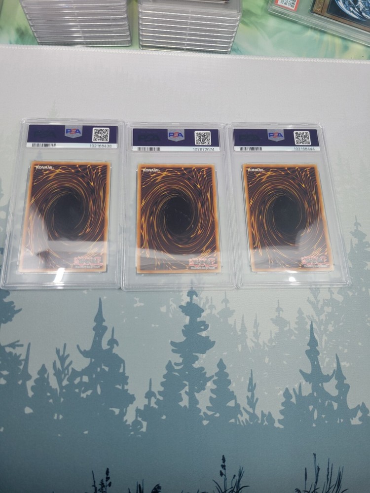 The product is a Yu-Gi-Oh! TCG card set celebrating the 25th anniversary of the franchise, featuring iconic creatures like Blue-Eyes White Dragon and Dark Magician. The set includes a Blue-Eyes White Dragon card, marked as a Secret Rare with a holographic finish. This collectible card is highly sought after by collectors and fans of the game. The card has been graded by PSA as a 7, adding to its value and appeal. DMG is a PSA 8