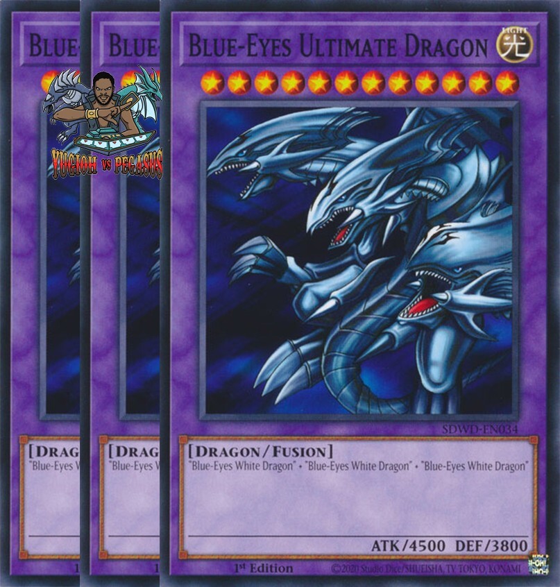 Yugioh! 3x Blue-Eyes Ultimate Dragon SDWD-EN034 Common NM