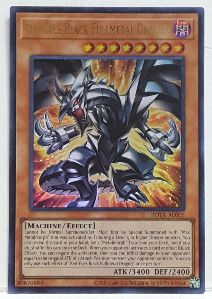 Buying Instruction – Must Read You are now buying: I) Product Description - Yugioh Asian-English Red-Eyes Black Fullmetal Dragon ROTA-AE005 Ultra Rare II) Shipping (By Registered Post)-International/Local (DHL eCommerce or equivalent for international shipping) - 1 st Card = $11.00(Int), $11.00(local), additional item +$2.00 per card. III) Tracking number will be provided. IV) Packaging Method - The card will be insert into a sleeve and put into a top loader and put in a bubble envelope. V) Stock Availability - All items are in stock at the time of listing. - In the case of the stock being unavailable due to unforeseen circumstances, you will be able to refund. International Buyers – Please Note: Import duties, taxes, and charges are not included in the item price or shipping cost. These charges are the buyer's responsibility. Please check with your country's customs office to determine what these additional costs will be prior to bidding or buying. Powered by SoldEazy