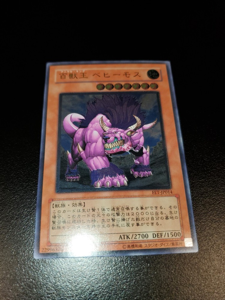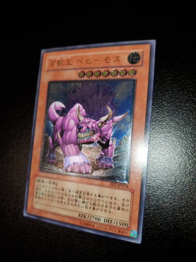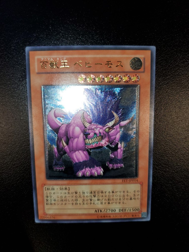 Yugioh Behemoth The King Of All Animals Ultimate Rare FET-JP014 Near Mint Will be shipped in penny sleeve encased in toploader and finally wrapped around an antiweather/movement team bag. Thanks for the trust and I will assure you the safest of shipments with your order. Feel free to message for further pictures or questions.