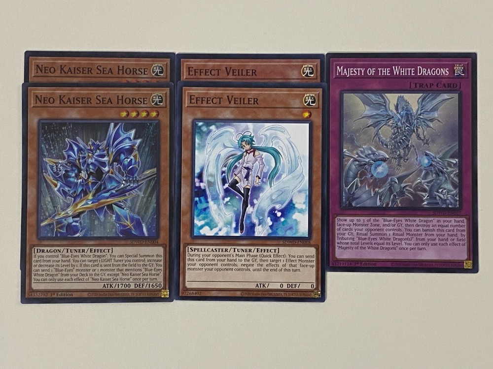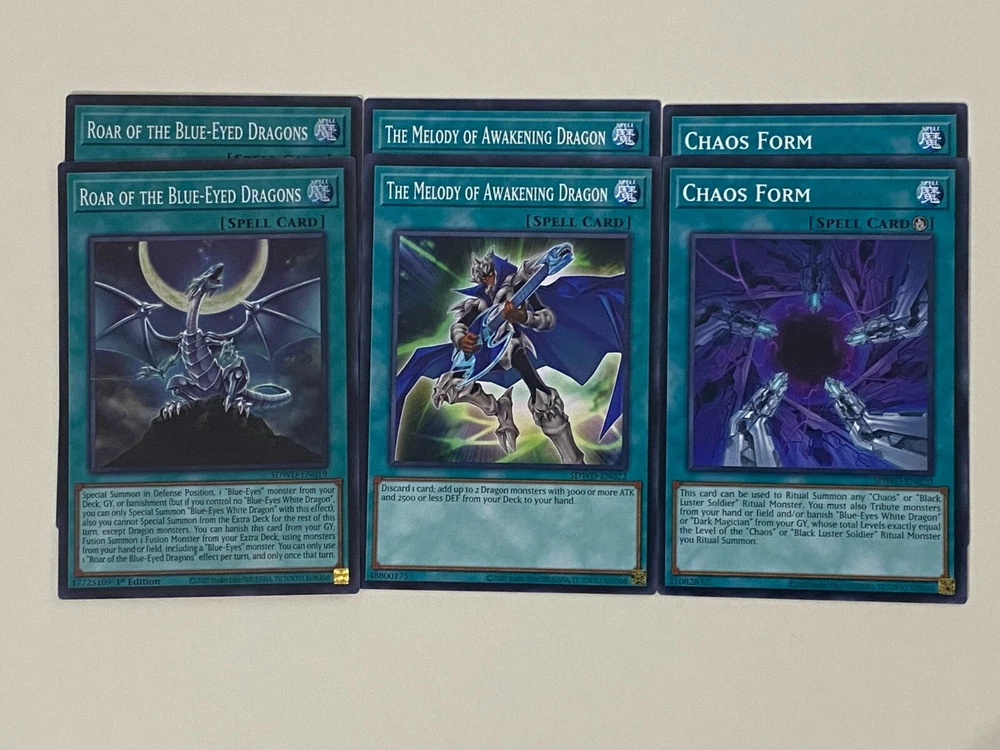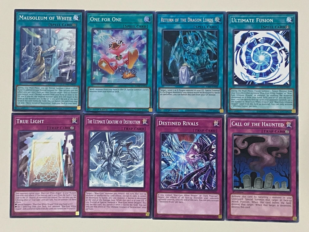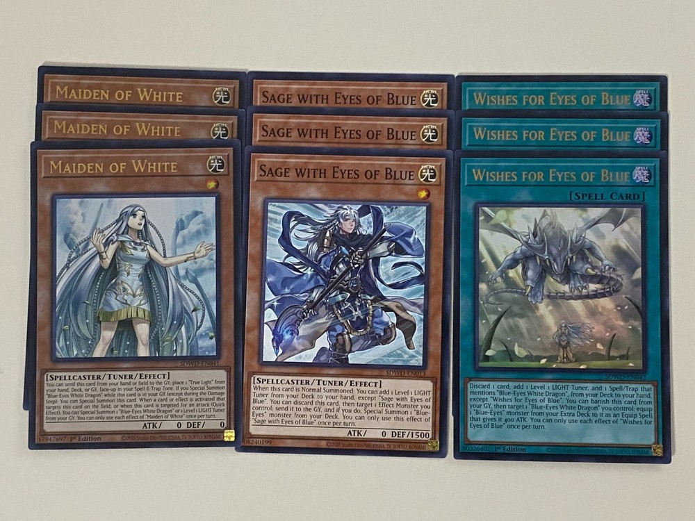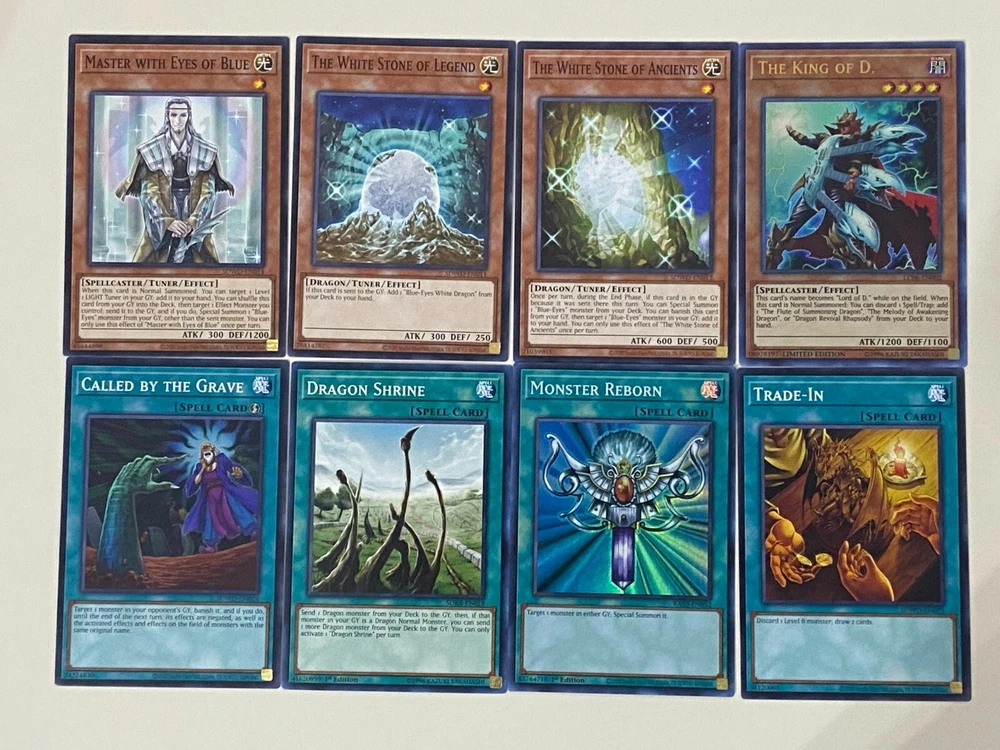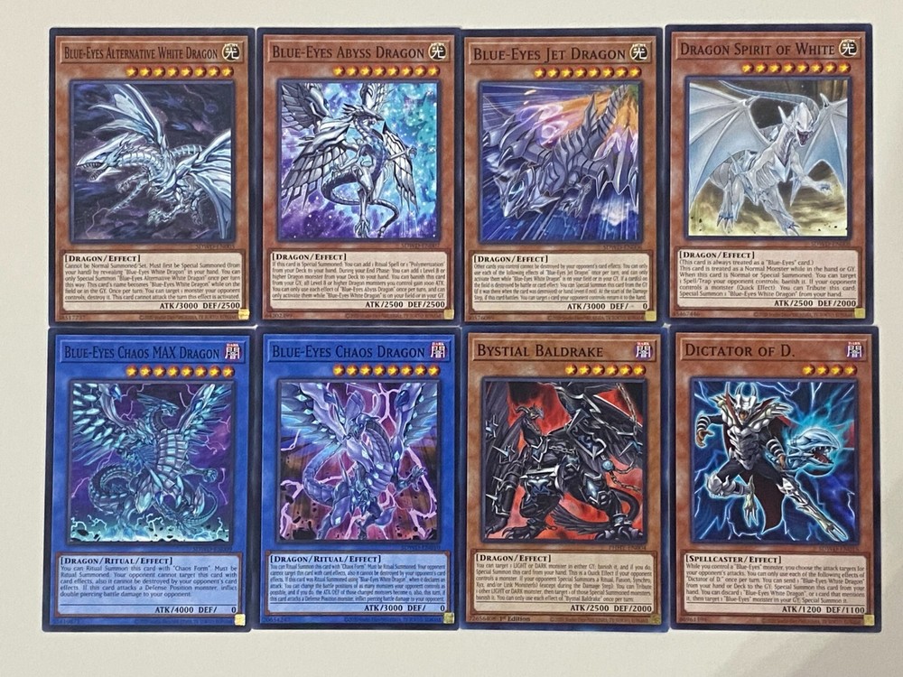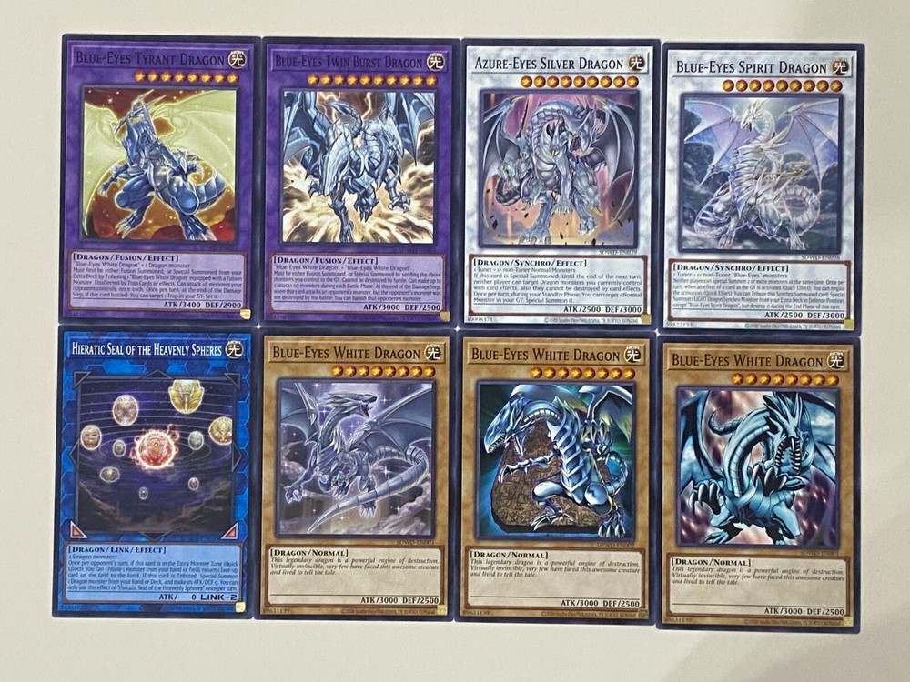 Blue-Eyes Deck 60 Cards The cards are in NM condition unless stated otherwise. All cards are authentic and will be 1st, unlimited or limited edition cards. Each card will be sleeved. Also will include a Free Sealed Booster Pack! Deck Information Monsters 1x Blue-Eyes Abyss Dragon 1x Blue-Eyes Alternative White Dragon 1x Blue-Eyes Chaos Dragon 1x Blue-Eyes Chaos MAX Dragon 1x Blue-Eyes Jet Dragon 3x Blue-Eyes White Dragon (different artwork) 1x Bystial Baldrake 1x Dictator of D. 1x Dragon Spirit of White 2x Effect Veiler 3x Maiden of White - Ultra Rare 1x Master with Eyes of Blue 2x Neo Kaiser Sea Horse - Super Rare 3x Sage with Eyes of Blue 1x The King of D. - Ultra Rare 1x The White Stone of Ancients 1x The White Stone of Legend Spells 1x Called by the Grave 2x Chaos Form 1x Dragon Shrine 1x Mausoleum of White 1x Monster Reborn - Super Rare 1x One for One - Super Rare 1x Return of the Dragon Lords - Secret Rare 2x Roar of the Blue-Eyed Dragons - Super Rare 2x The Melody of Awakening Dragon 1x Trade-In 1x Ultimate Fusion 3x Wishes for Eyes - Ultra Rare Traps 1x Call of the Haunted (Lightly Played) 1x Destined Rivals 1x Majesty of the White Dragons - Super Rare 1x The Ultimate Creature of Destruction 1x True Light Extras 1x Azure-Eyes Silver Dragon 1x Blue-Eyes Spirit Dragon 1x Blue-Eyes Twin Burst Dragon 1x Blue-Eyes Tyrant Dragon 1x Blue-Eyes Ultimate Dragon 1x Blue-Eyes Ultimate Spirit Dragon - Ultra Rare 1x Dingirsu, the Orcust of the Evening Star - Secret Rare 1x Hieratic Seal of the Heavenly Spheres 1x Indigo-Eyes Silver Dragon - Ultra Rare 1x Lightstorm Dragon 1x Neo Blue-Eyes Ultimate Dragon 1x Number 38: Hope Harbinger Dragon Titanic Galaxy - Ultra Rare 1x Spirit with Eyes of Blue - Ultra Rare