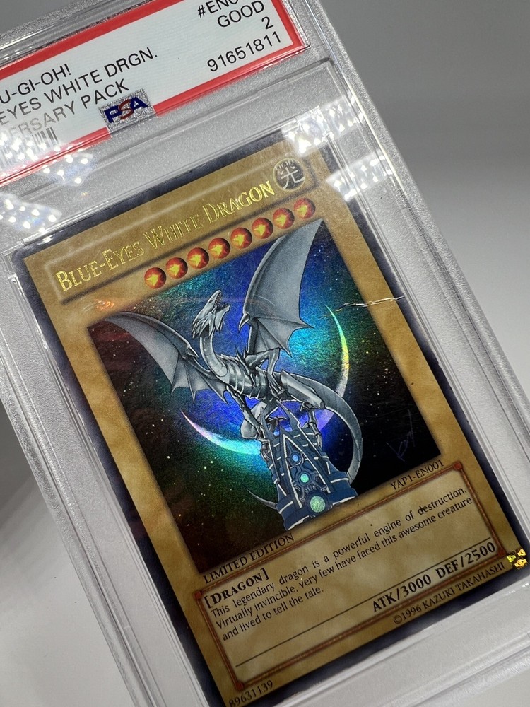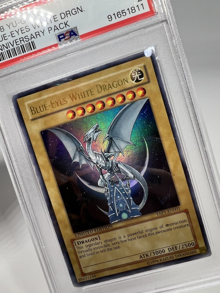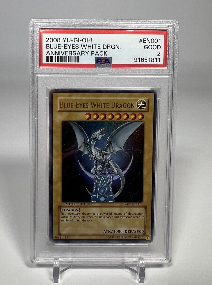 Yugioh Blue Eyes White Dragon Anniversary Pack YAP1-EN001 PSA 2 Limited Ed. Condition is Graded. Shipped with USPS Ground Advantage.