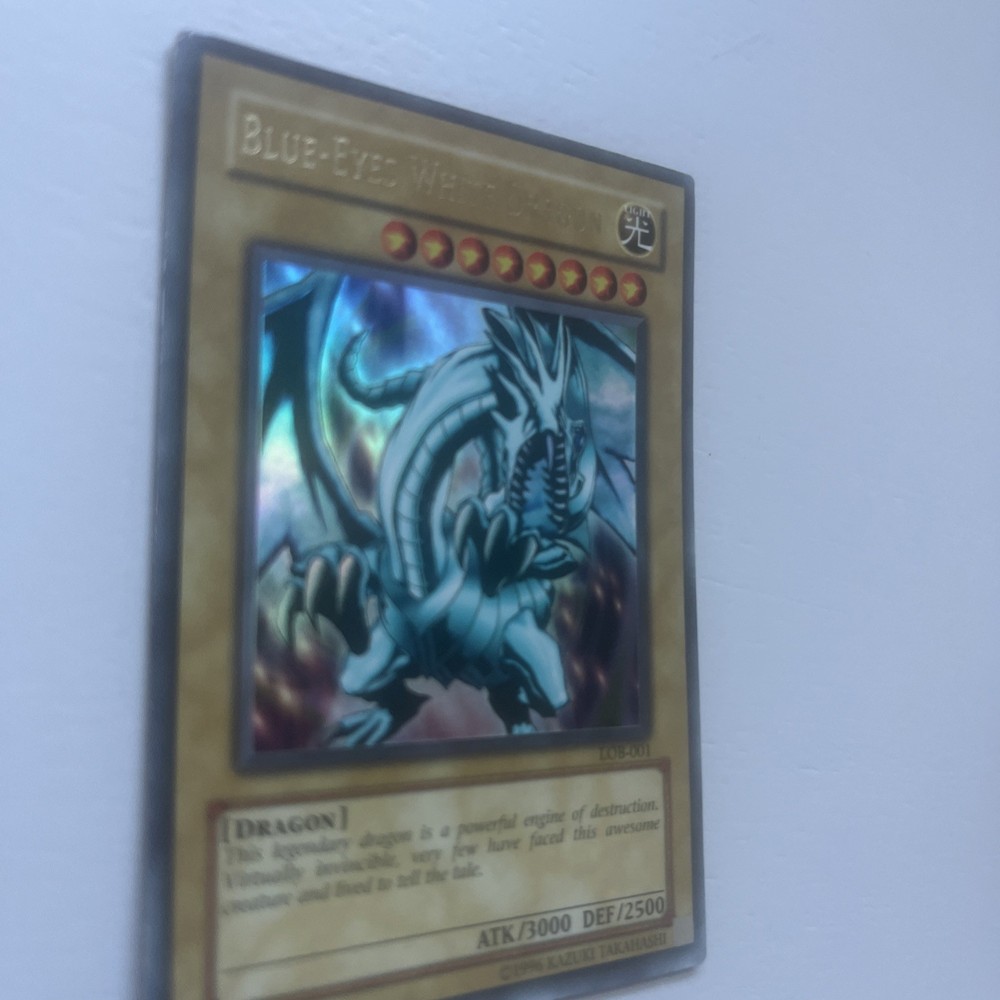 Elevate your Yu-Gi-Oh! TCG collection with the iconic Blue Eyes White Dragon from the Legend of Blue Eyes White Dragon set. Card number LOB-001 boasts an Ultra Rare rarity with a holographic finish that catches the eye, featuring the formidable Seto Kaiba. This English edition card, manufactured by Konami in 2002, is a must-have for both serious collectors and fans of the series. The Blue Eyes White Dragon card is a Normal type with a powerful attack of 3000 and a defense of 2500, ready to make a significant impact in your deck. Its standard card size fits perfectly into sleeves and binders for protection and organization. This vintage piece, ungraded and showcased in its natural light color, is a true testament to the early days of Yu-Gi-Oh! TCG.