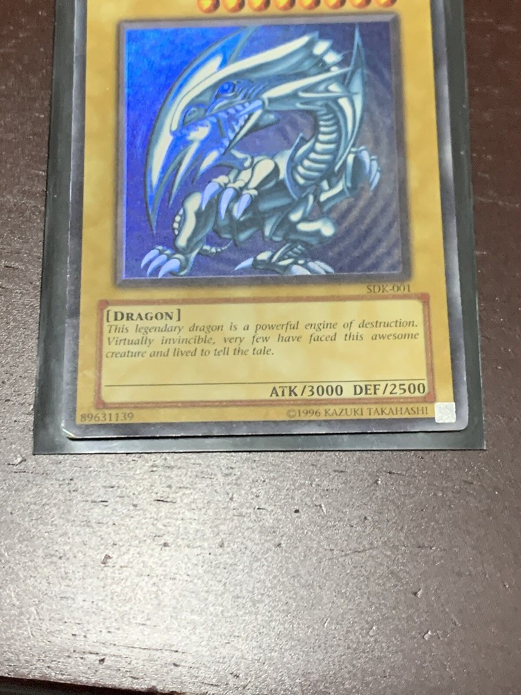 The Blue Eyes White Dragon SDK-001 is a highly sought-after collectible card from the Yu-Gi-Oh! TCG franchise. Manufactured by Konami in 2002, this vintage card features the iconic Blue-Eyes White Dragon character with a high attack power of 3000 and a strong defense of 2500. With its holo finish and ultra rare rarity, this English-language card is a valuable addition to any collector's deck. Representing the light attribute and standard size, this card is a must-have for fans of the game looking to enhance their gameplay with a powerful and iconic creature.