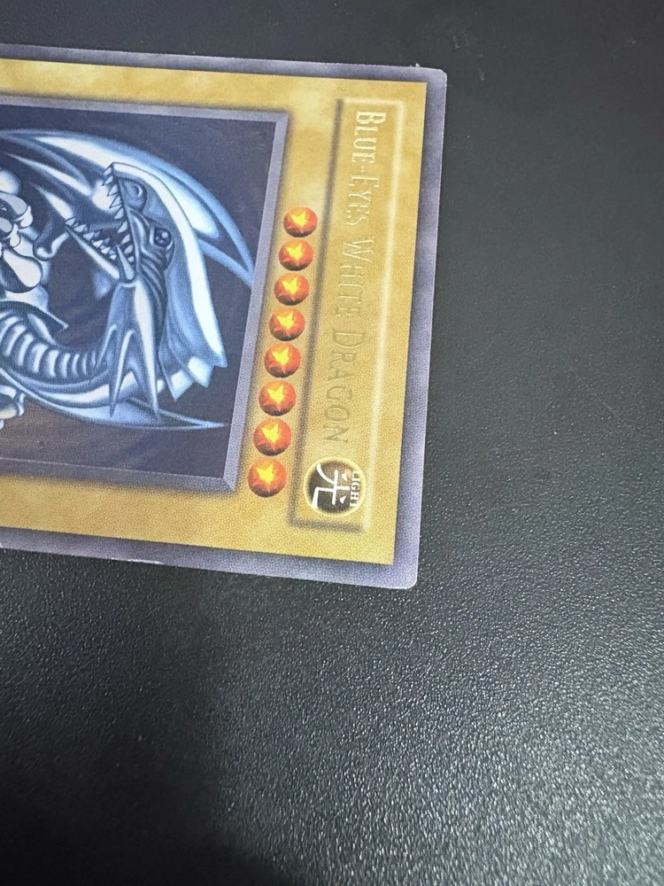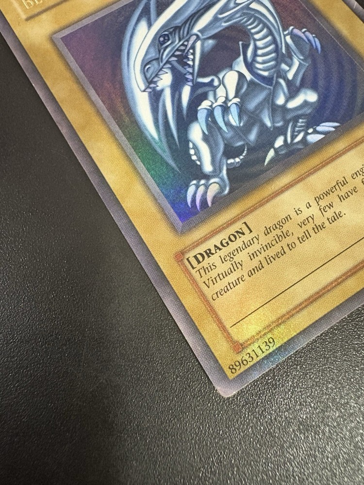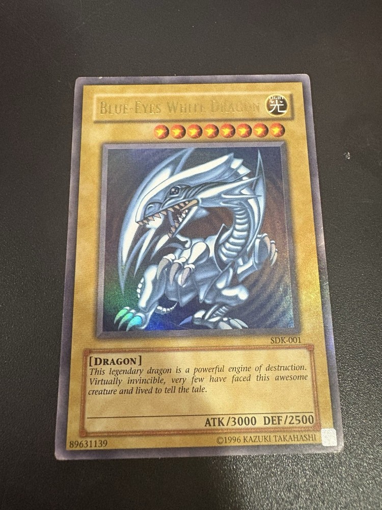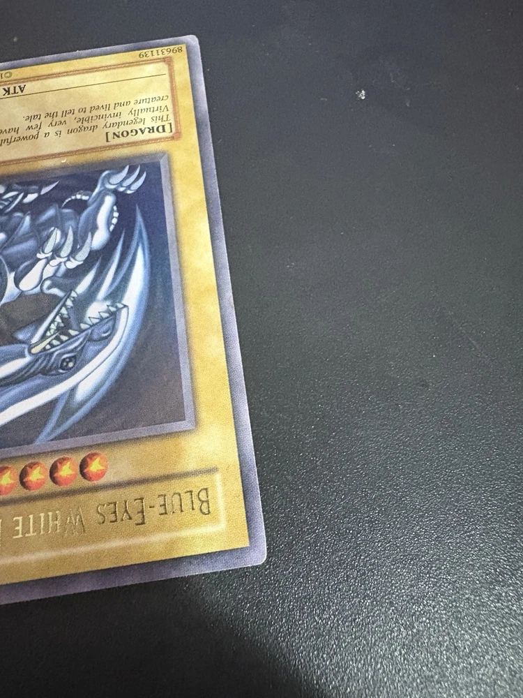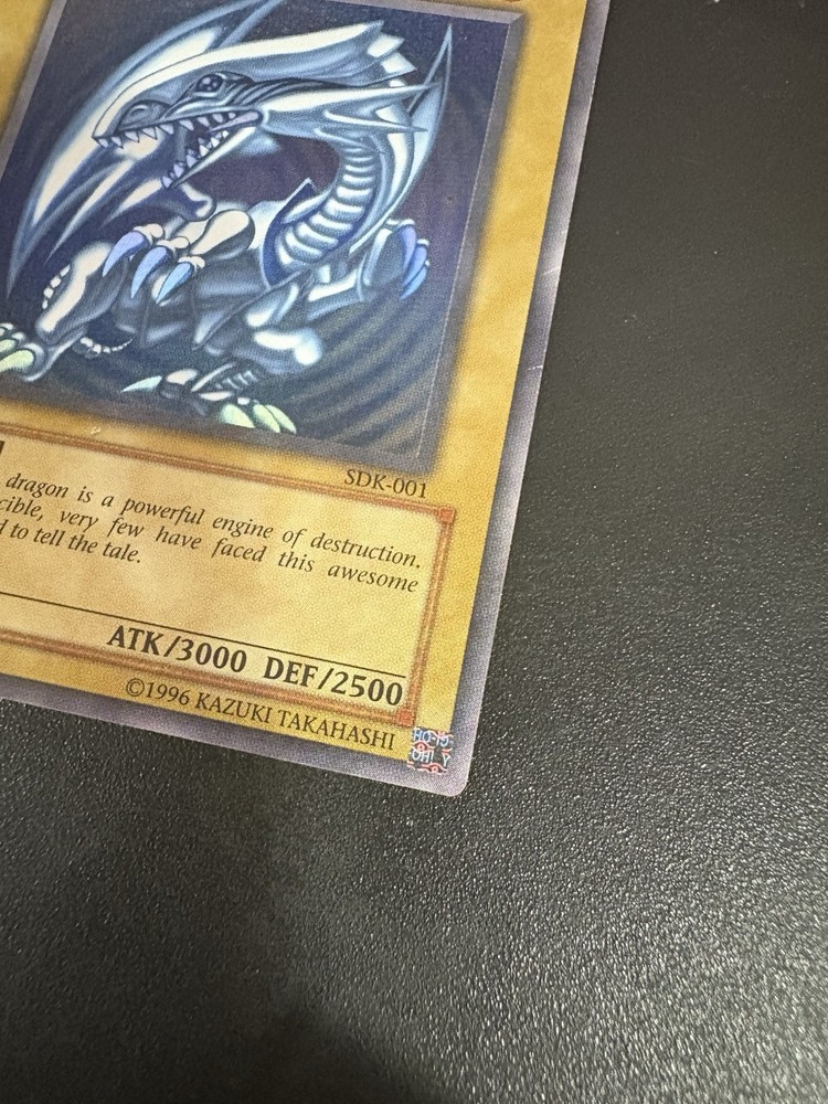 Blue eyes white dragon has wear on the edges from starter deck SDK – 00 one