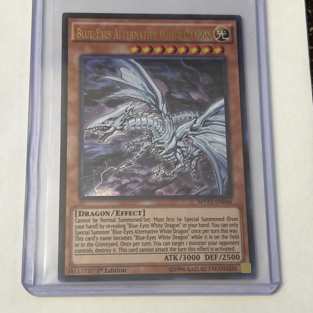 Yugioh Blue-Eyes Alternative White Dragon MVP1-EN046 1st Edition is a collectible card from the CCG Individual Cards category. It is graded as Lightly played (Excellent) and ungraded overall. This card features the powerful Blue-Eyes Alternative White Dragon character in its 1st Edition version.
