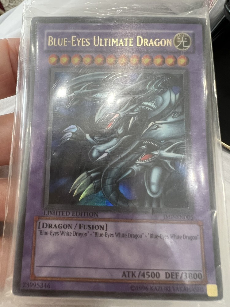Absolutely love this Blue-Eyes Ultimate Dragon card—it's a stunning holo with flawless condition right out of the pack! As a must-have for any Yu-Gi-Oh collector, the limited edition rarity makes it even more special. Perfect for fans of the classic series, and with its ultra-rare status, it’s a solid investment too! Super happy with this purchase.