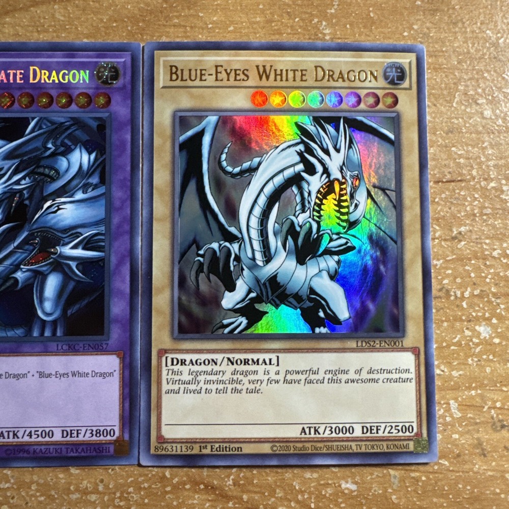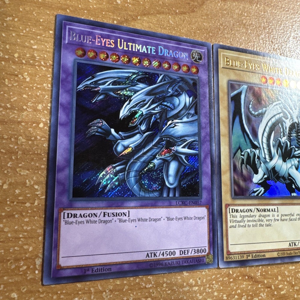 🔥 Yugioh Blue-Eyes Ultimate Dragon LCKC-EN057 SECRET RARE & BLUE-EYES White Dragon LDS2-EN001 ULTRA RARE Near Mint 1st edition You will receive BOTH cards shown in the picture This item will be sent in a plastic sleeve/deck protector sleeve and in a toploader for maximum protection. Shipping is FREE! Payment is due immediately. The faster the payment the faster i'll ship out. Questions or comments?? Feel free to contact me. I'll get back to you within 24 hours. Check out my eBay store for more Yugioh items!