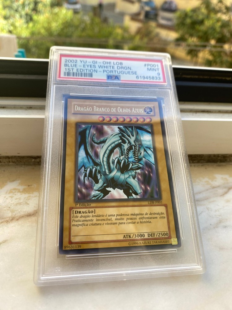 Up for sale is an incredibly rare 2002 Yu-Gi-Oh! Blue-Eyes White Dragon card, 1st Edition Portuguese printing. This highly sought-after collector’s item has been professionally graded PSA 9 MINT, guaranteeing near-perfect condition. This card is a true gem for any serious collector or fan of Yu-Gi-Oh!, especially in the Portuguese language and with this outstanding grade. Don’t miss your chance to own one of the rarest and most iconic cards from the original Yu-Gi-Oh! series. Feel free to ask any questions!