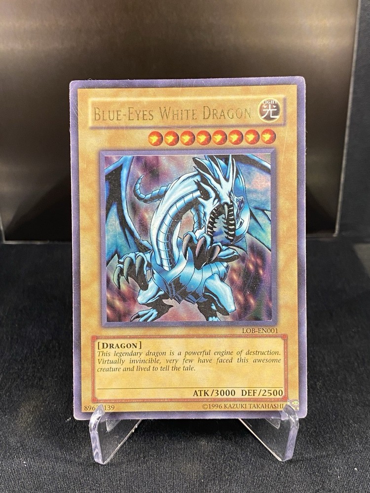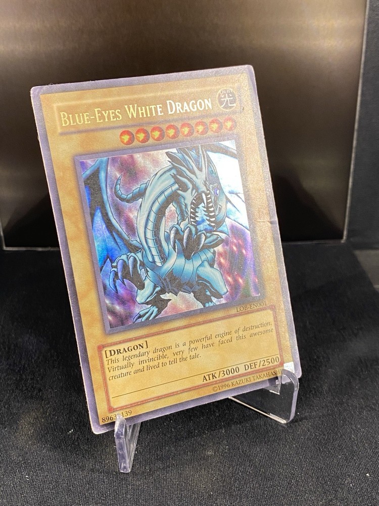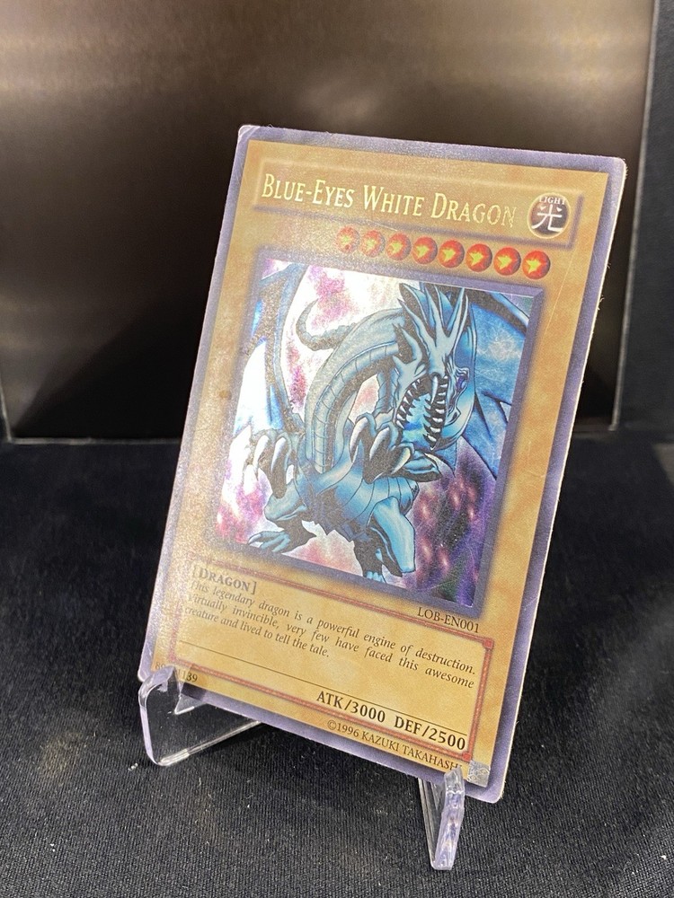 This Blue-Eyes White Dragon from LOB is a classic treasure for Yu-Gi-Oh! fans! Even in MP condition, it holds serious collector value—perfect for nostalgic players or those building a competitive deck. The iconic artwork and dragon-type power make it a standout. While it has some wear, the card's durability and rarity still shine. A fantastic addition for any collection, especially if you love the original sets!