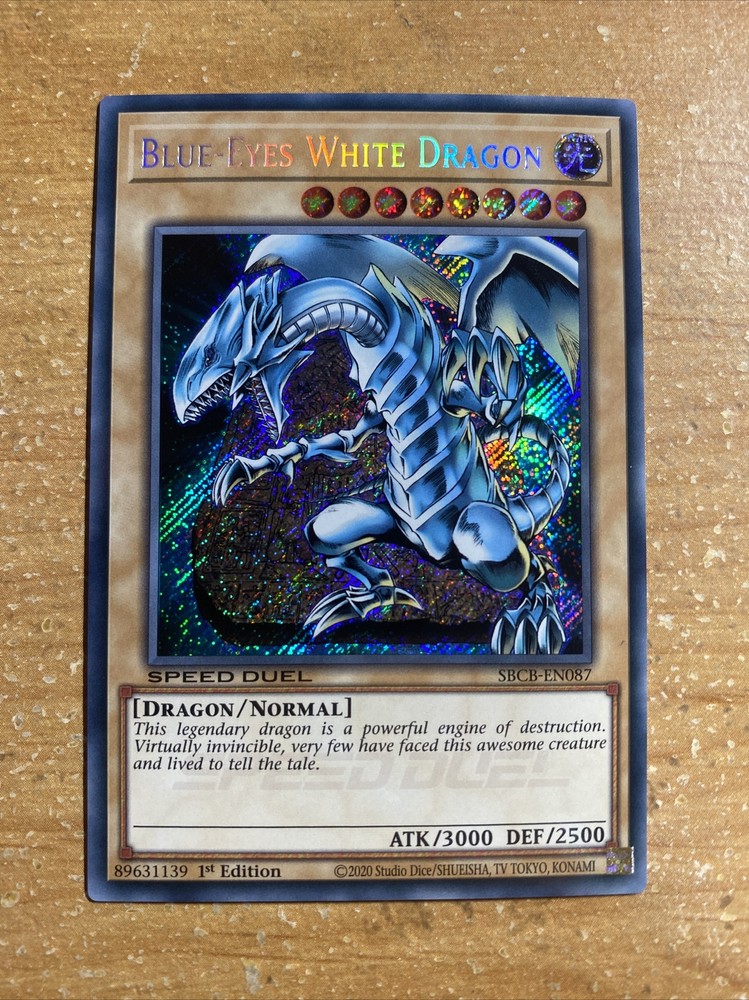🔥 Yugioh Blue-Eyes White Dragon SBCB-EN087 SPEED DUEL SECRET RARE HOLOFOIL 🔥 Near Mint - Very Lightly Played condition This item will be sent in a plastic sleeve/deck protector sleeve and in a toploader for maximum protection. Shipping is FREE! Payment is due immediately. The faster the payment the faster i'll ship out. Questions or comments?? Feel free to contact me. I'll get back to you within 24 hours. Check out my eBay store for more Yugioh items!