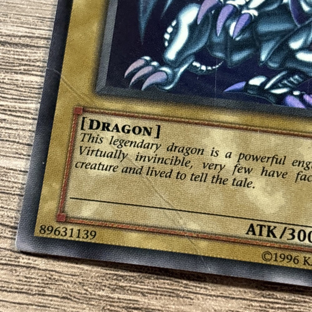 This Yugioh! card features the iconic Blue-Eyes White Dragon, with an ultra rare rarity and card number SDK-001. It belongs to the Starter Deck: Kaiba set and is perfect for collectors and players alike. The card is in great shape and has not been limited in any way. The card's color is blue and it is a single individual card. It is ideal for those who are looking for a specific card to complete their collection or for those who want to add a rare card to their deck. Don't miss out on the opportunity to own this highly sought after card. This card has been played alot. It has an obvious bend crease on the corner and another on the back. See photos.