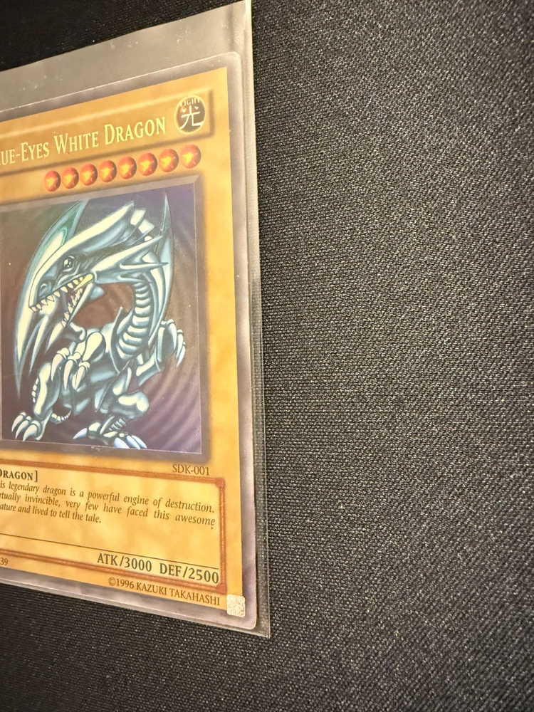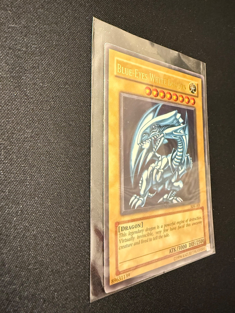 The Yugioh Blue-Eyes White Dragon SDK-001 Ultra Rare card is a vintage collectible from the Starter Deck Kaiba set, manufactured by Konami for the Yu-Gi-Oh! TCG game. This Light attribute Dragon card features a holo finish and is in English language. With its rarity as an Ultra Rare card, it is a valuable addition to any Yu-Gi-Oh! card collection. The Blue-Eyes White Dragon (Yu-Gi-Oh!) card is a sought-after card for players and collectors alike, known for its powerful abilities and iconic design within the game.