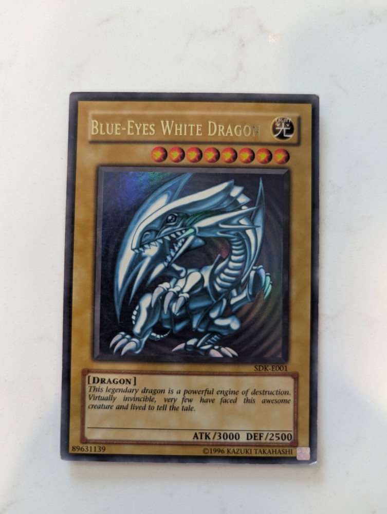 Elevate your Yu-Gi-Oh! TCG collection with the legendary Blue-Eyes White Dragon SDK-E001. This ultra-rare monster card is a must-have for players and collectors alike, featuring the iconic blue dragon silhouette that commands respect on the battlefield and in display cases.With its unlimited edition status, it offers both seasoned collectors and newcomers the chance to own a piece of the game's storied history. The card's light play condition ensures that it's been well-maintained, ready to be a standout addition to your collection or a strategic asset during your next duel.