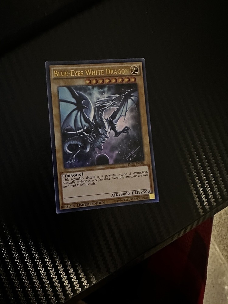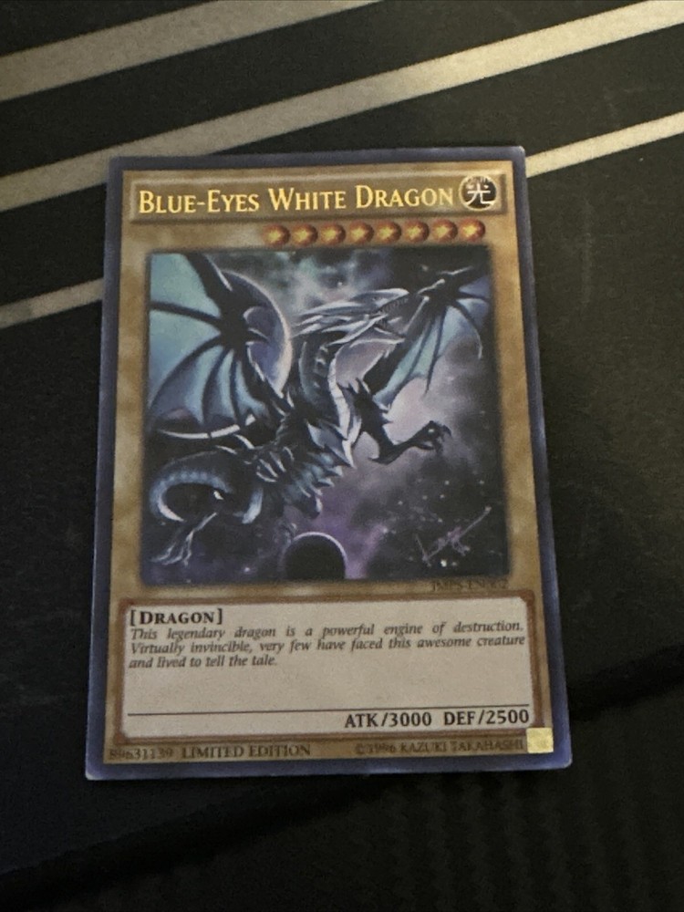 This Blue-Eyes White Dragon is a must-have for collectors! The Ultra Rare print looks stunning, and even with minor corner wear and slight separation, it's in great shape overall. Perfect for display or adding to your prized collection—definitely worth it for any Yugioh fan!