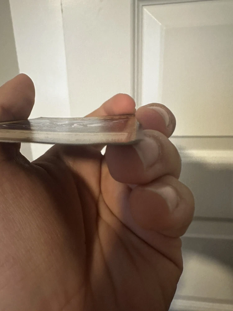 Soft rounding of corners Bottom right corner separating a little I never played with it, card spent most of its time in a sleeve