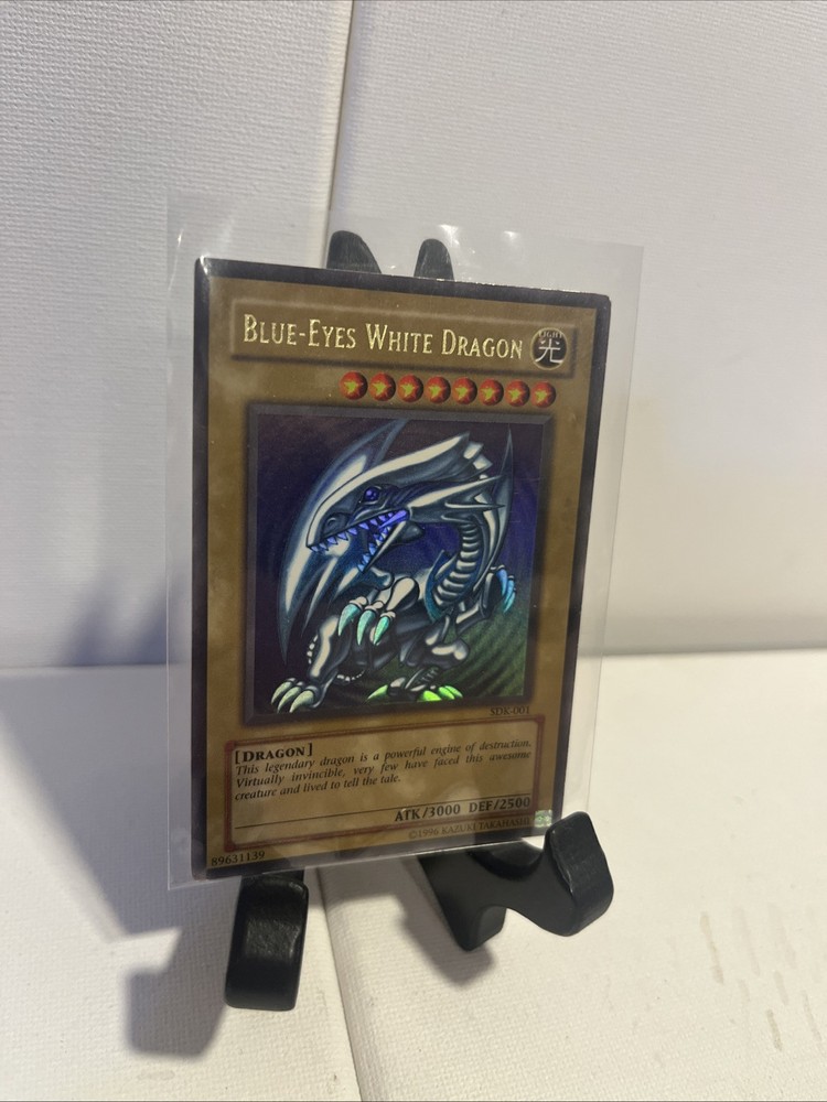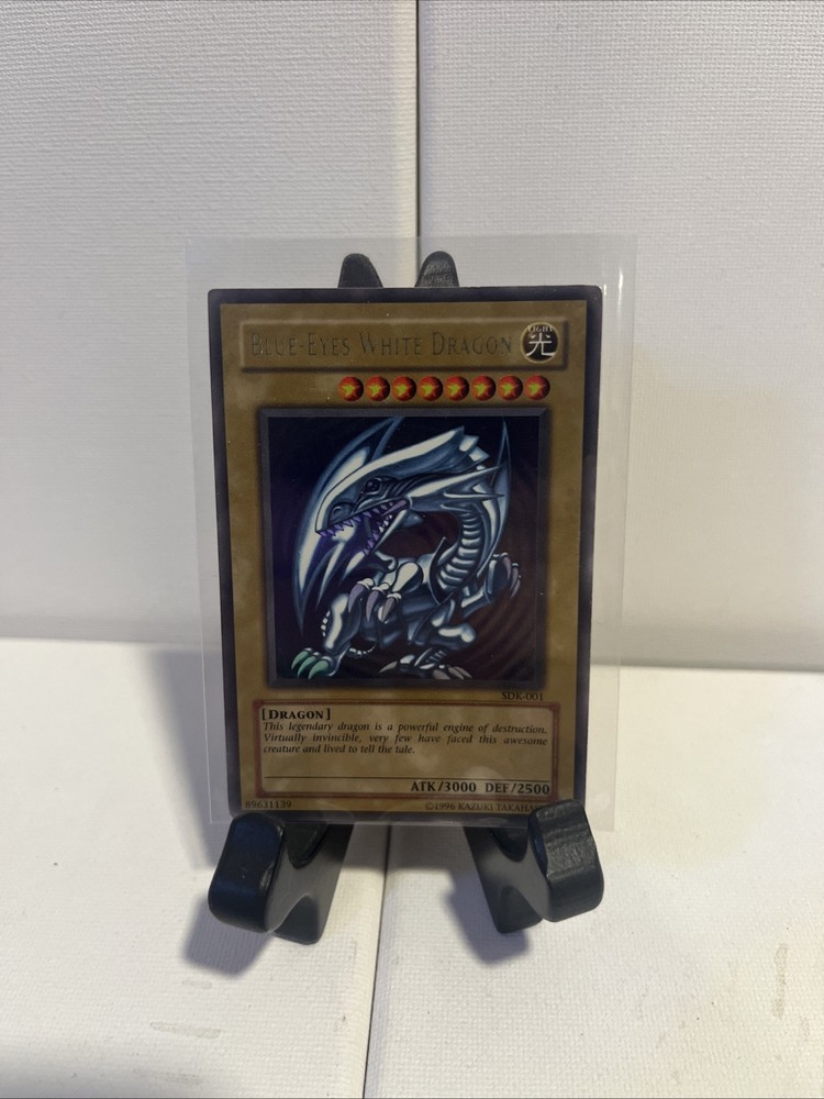 This rare and valuable Yugioh card features the iconic Blue-Eyes White Dragon from the Yugi set. The card is a Normal type with a Stage 1 creature/monster type of Dragon. The card size is standard and made of card stock material with a holographic finish. The card is in very good condition, with no autographs or signs of wear and tear. The card is an Ultra Rare card with the card number SDK-001 and features the character Seto Kaiba. The card is in English language and was manufactured in Japan in 1996. The illustrator of the card is Mitsuhiro Arita. This card is a must-have for any Yugioh TCG collector and is a great addition to any collection.