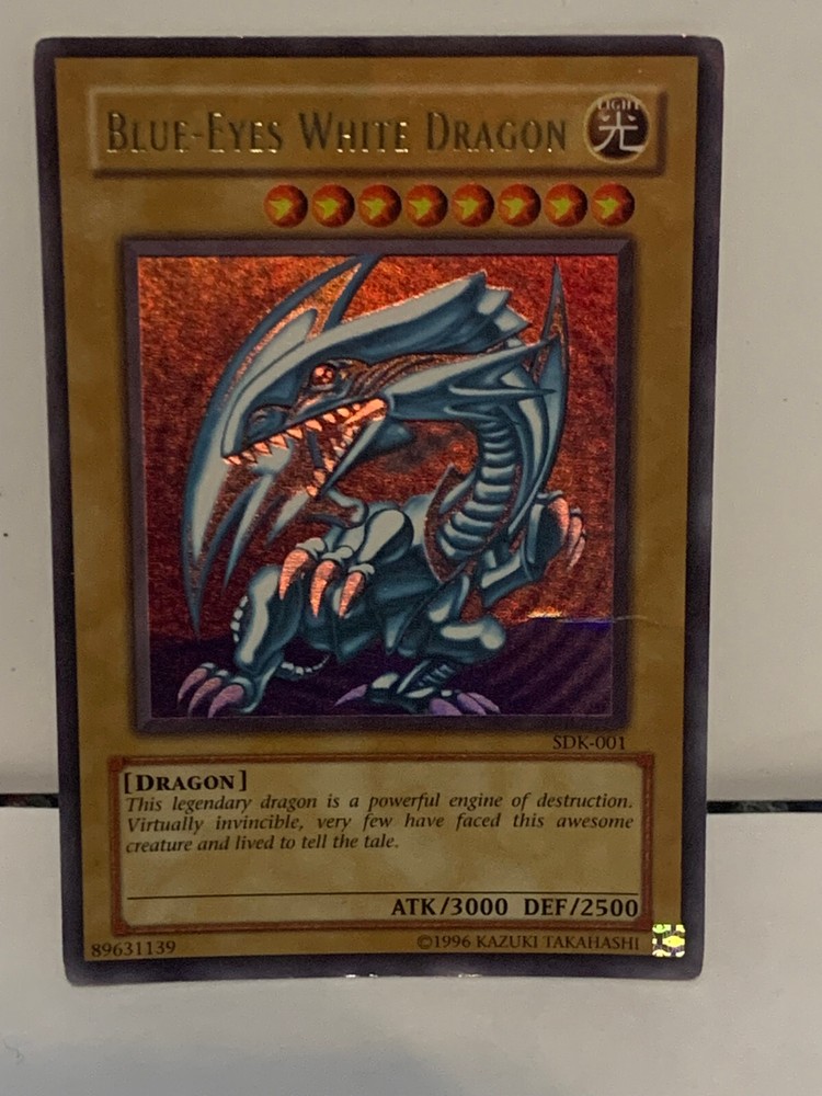 Up for sale is Blue-Eyes White Dragon from the original Starter Deck: Kaiba. Card is listed as MP due to the visible crease on the front and the back of the card. US buyers only.
