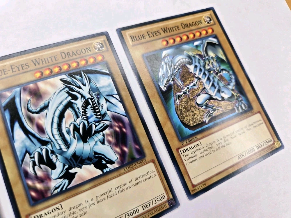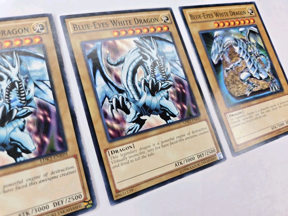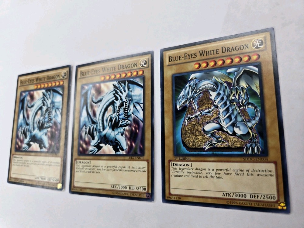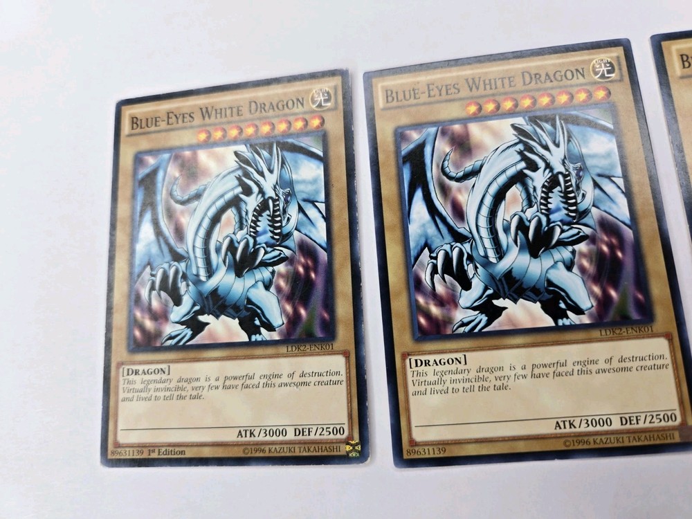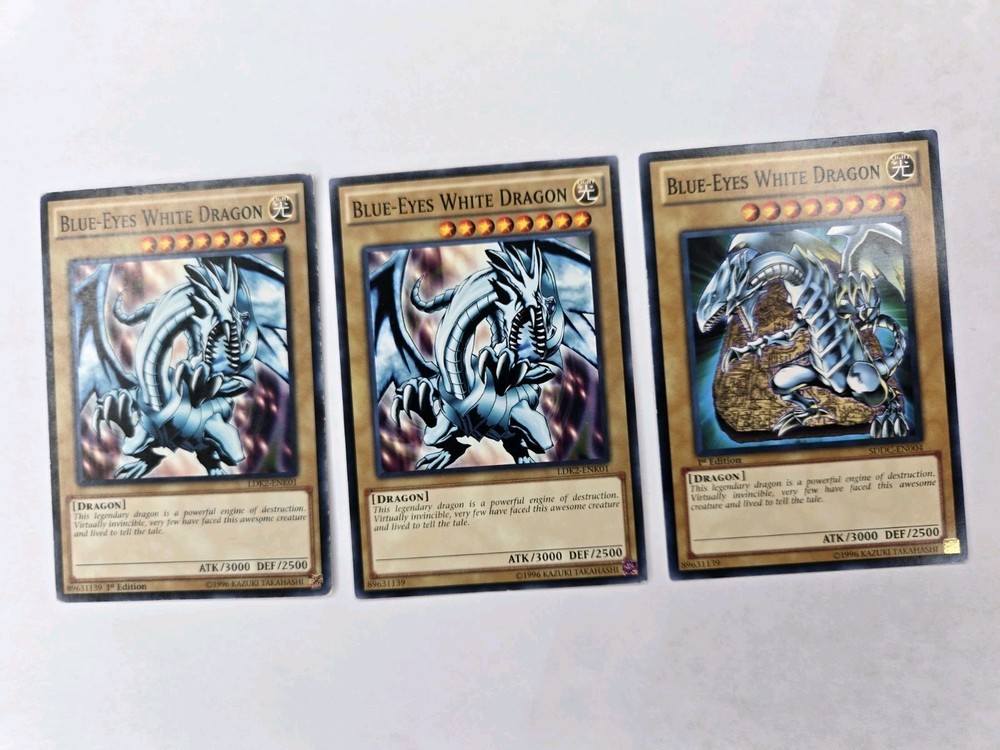 3x cards Penny sleeve and card saver included. Shipped USPS first class mail letter. Elevate your Yu-Gi-Oh! TCG collection with the iconic Blue-Eyes White Dragon card, available here. With its striking blue attribute, this card is a staple for players and collectors alike, seeking to bolster their deck with powerful spellcaster dragons. The set includes three copies of the LDK2- SDDC card, ensuring a consistent presence in your strategic lineup. Each card showcases the unlimited feature, allowing for unlimited usage during gameplay, which is a must-have for competitive players. The card's name alone resonates with the excitement of the game, and its vivid artwork is a standout piece in any collection. Whether for play or display, this set is a perfect addition to any Yu-Gi-Oh! TCG assortment.