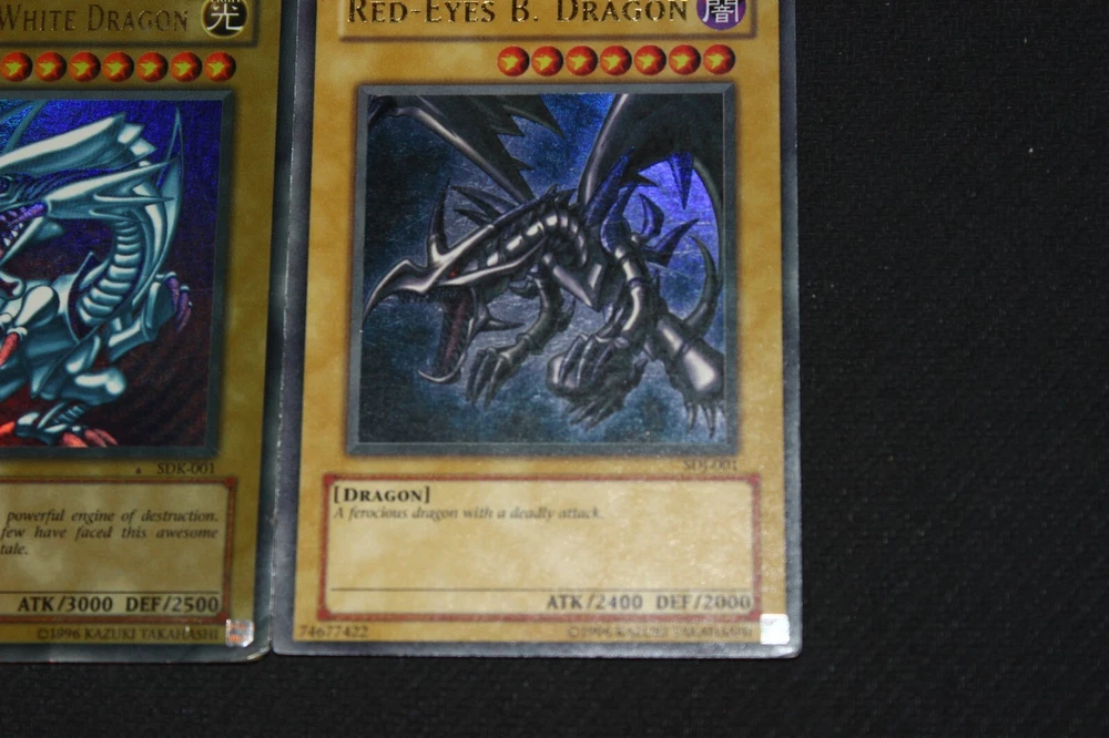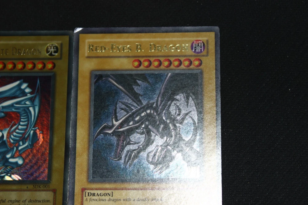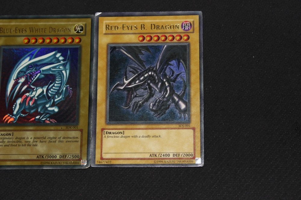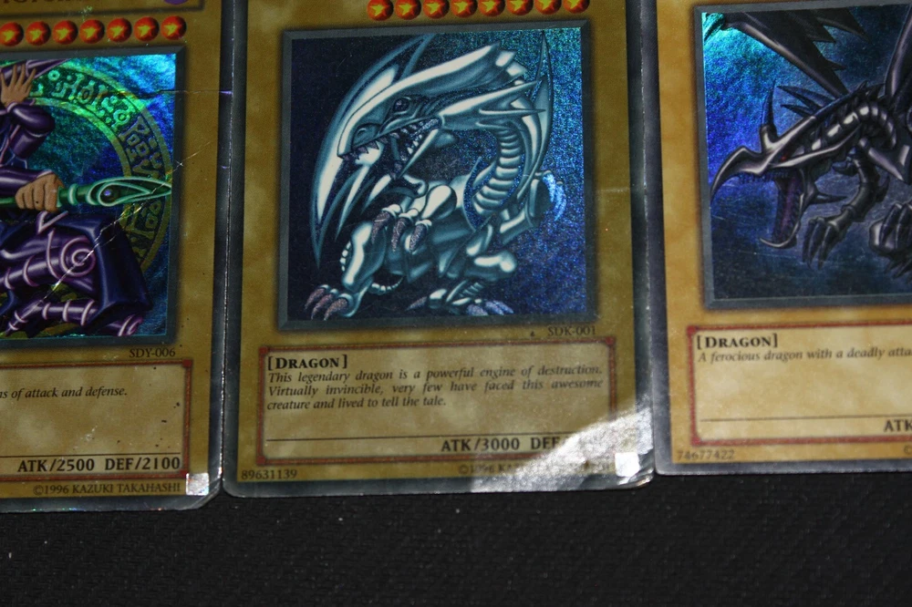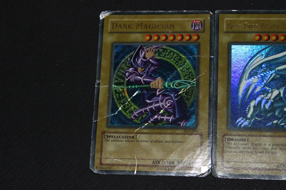 You will receive the card(s) pictured above. Read below for more details(particularly regarding the condition of the card(s)): Condition -The cards range from moderately-played(a fair amount of wear) to damaged(a ton of wear) condition; Dark Magician is damaged, Blue-Eyes is heavily-played(a lot of wear), and Red-Eyes is moderately-played Payment -PayPal Payments Preferred. Payment preferred under 48 hours. Shipping - For item listings , $4.58 will be charged for the first listing, with no additional shipping charge for additional item listings ; Shipping provided via USPS within the 50 states with tracking included Returns -If you are unsatisfied with your purchase, send me a message on Ebay, and we can reason through getting you a Refund . Questions -Feel to ask questions.