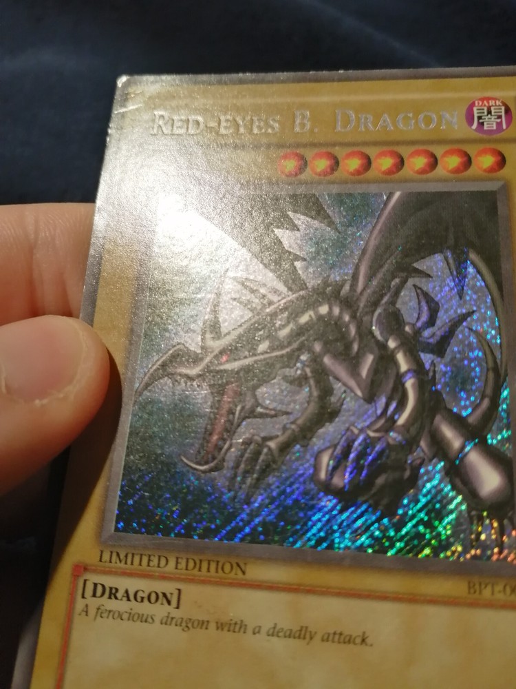 Yugioh Card Red-Eyes Black Dragon BPT-005 Promo Secret Rare Eng PL Condizioni come da foto. Gli eventuali difetti più evidenti sono stati evidenziati The card's conditions are as seen in the pic. The main flaws have been highlighted, if any Per altre foto o altre informazioni sono a disposizione/For other photos or info please ask