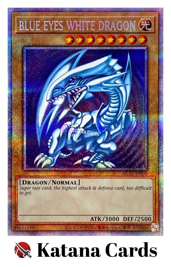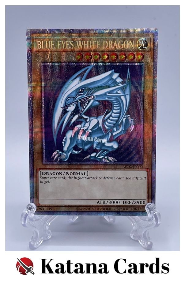 Yugioh Cards | Blue-Eyes White Dragon Prismatic Secret Rare | AC02-JP000 Japanes C ondition Near Mint to Excellent Yugioh Cards Check our Yugioh cards here. D iscounts!!! Buy more than 2 cards in my store, Save 3 - 5% off for each cards. Yugioh Cards Check our Yugioh cards here. Discounts are applied automatically by simply adding the product to your cart! If the discount is not applied automatically due to eBay's system error, please inform us of the "Discount Error" in the message after purchasing the item. We will manually apply the discount based on the number of items purchased. S hipping We usually ship within 3 - 5 business days of receiving cleared payment. Economy Shipping - No Tracking Number - It takes 7 - 30 days after shipment. Expedited Shipping - Tracking Number - It takes 3 - 10 days after shipment. If you buy more than 2 cards and choose Expedited Shipping, please select Expedited Shipping for just 1 item. We will ship the items in one package. P ayment We can be contacted at any time through eBay messages if you have any questions, comments or product requests. We will respond to you within 24 hours and do our best to help you out! We encourage our customers to contact us with any questions or concerns! We'd like to be sure you are completely satisfied with your purchase. We do not mark merchandise values below value or mark items as gifts. US and International government regulations prohibit such behavior. I nternational Buyers - Please Note Import duties, taxes, and charges are not included in the item price or shipping cost. These charges are the buyers responsibility. Please check with your country's customs office to determine what these additional costs will be prior to bidding or buying.