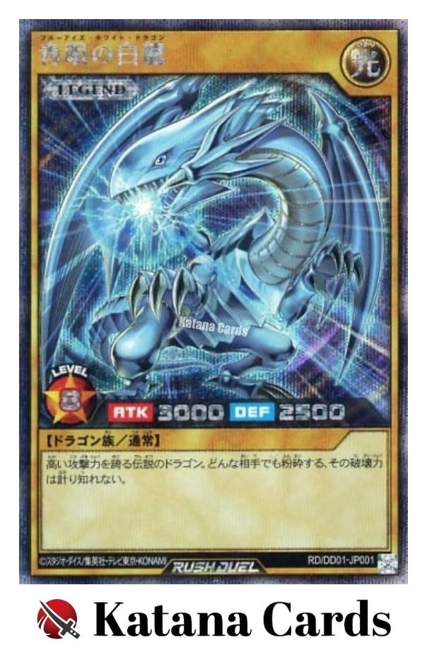 Yugioh Cards | Blue-Eyes White Dragon (Rush Duel) Secret Rare | RD/DD01-JP001 Jap C ondition Near Mint to Excellent Yugioh Cards Check our Yugioh cards here. D iscounts!!! Buy more than 2 cards in my store, Save 3 - 5% off for each cards. Yugioh Cards Check our Yugioh cards here. Discounts are applied automatically by simply adding the product to your cart! If the discount is not applied automatically due to eBay's system error, please inform us of the "Discount Error" in the message after purchasing the item. We will manually apply the discount based on the number of items purchased. S hipping We usually ship within 3 - 5 business days of receiving cleared payment. Economy Shipping - No Tracking Number - It takes 7 - 30 days after shipment. Expedited Shipping - Tracking Number - It takes 3 - 10 days after shipment. If you buy more than 2 cards and choose Expedited Shipping, please select Expedited Shipping for just 1 item. We will ship the items in one package. P ayment We can be contacted at any time through eBay messages if you have any questions, comments or product requests. We will respond to you within 24 hours and do our best to help you out! We encourage our customers to contact us with any questions or concerns! We'd like to be sure you are completely satisfied with your purchase. We do not mark merchandise values below value or mark items as gifts. US and International government regulations prohibit such behavior. I nternational Buyers - Please Note Import duties, taxes, and charges are not included in the item price or shipping cost. These charges are the buyers responsibility. Please check with your country's customs office to determine what these additional costs will be prior to bidding or buying.