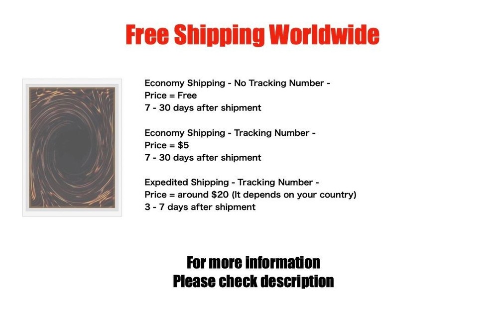 Yugioh Cards | Malefic Red-Eyes Black Dragon Super Parallel Rare | 20TH-JPC68 Jap C ondition Near Mint to Excellent Yugioh Cards Check our Yugioh cards here. D iscounts!!! Buy more than 2 cards in my store, Save 3 - 5% off for each cards. Yugioh Cards Check our Yugioh cards here. Discounts are applied automatically by simply adding the product to your cart! If the discount is not applied automatically due to eBay's system error, please inform us of the "Discount Error" in the message after purchasing the item. We will manually apply the discount based on the number of items purchased. S hipping We usually ship within 3 - 5 business days of receiving cleared payment. Economy Shipping - No Tracking Number - It takes 7 - 30 days after shipment. Expedited Shipping - Tracking Number - It takes 3 - 10 days after shipment. If you buy more than 2 cards and choose Expedited Shipping, please select Expedited Shipping for just 1 item. We will ship the items in one package. P ayment We can be contacted at any time through eBay messages if you have any questions, comments or product requests. We will respond to you within 24 hours and do our best to help you out! We encourage our customers to contact us with any questions or concerns! We'd like to be sure you are completely satisfied with your purchase. We do not mark merchandise values below value or mark items as gifts. US and International government regulations prohibit such behavior. I nternational Buyers - Please Note Import duties, taxes, and charges are not included in the item price or shipping cost. These charges are the buyers responsibility. Please check with your country's customs office to determine what these additional costs will be prior to bidding or buying.