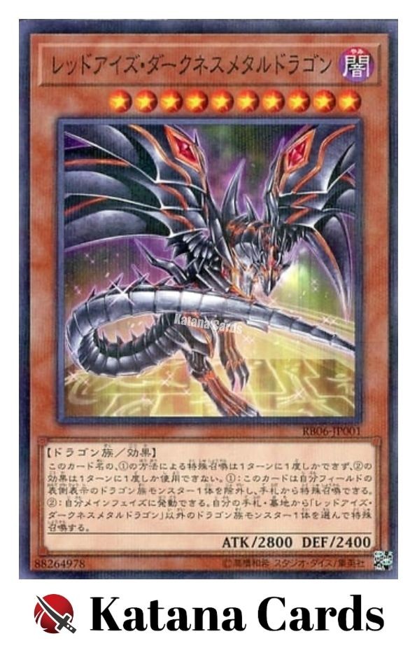 Yugioh Cards | Red-Eyes Darkness Metal Dragon Parallel Rare | RB06-JP001 Japanese C ondition Near Mint to Excellent Yugioh Cards Check our Yugioh cards here. D iscounts!!! Buy more than 2 cards in my store, Save 3 - 5% off for each cards. Yugioh Cards Check our Yugioh cards here. Discounts are applied automatically by simply adding the product to your cart! If the discount is not applied automatically due to eBay's system error, please inform us of the "Discount Error" in the message after purchasing the item. We will manually apply the discount based on the number of items purchased. S hipping We usually ship within 3 - 5 business days of receiving cleared payment. Economy Shipping - No Tracking Number - It takes 7 - 30 days after shipment. Expedited Shipping - Tracking Number - It takes 3 - 10 days after shipment. If you buy more than 2 cards and choose Expedited Shipping, please select Expedited Shipping for just 1 item. We will ship the items in one package. P ayment We can be contacted at any time through eBay messages if you have any questions, comments or product requests. We will respond to you within 24 hours and do our best to help you out! We encourage our customers to contact us with any questions or concerns! We'd like to be sure you are completely satisfied with your purchase. We do not mark merchandise values below value or mark items as gifts. US and International government regulations prohibit such behavior. I nternational Buyers - Please Note Import duties, taxes, and charges are not included in the item price or shipping cost. These charges are the buyers responsibility. Please check with your country's customs office to determine what these additional costs will be prior to bidding or buying.