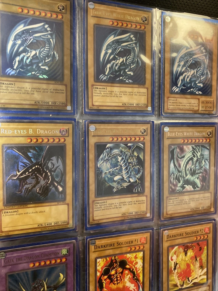 Yugioh Collection Binder 160+ Vintage! 5 Blue Eyes White Dragon, Dark magician. Condition is "Used". So many amazing cards in this collection. I’m more Pokémon focused so selling off my yugioh collection. I don’t actually know that much about them but I know there are some knock out cards in here. I took as many pictures as I could but still more pages were not shown so could be some hidden gems. I cannot guarantee condition of cards but all of them have been in their original sleeves since I received them. From NM to HP