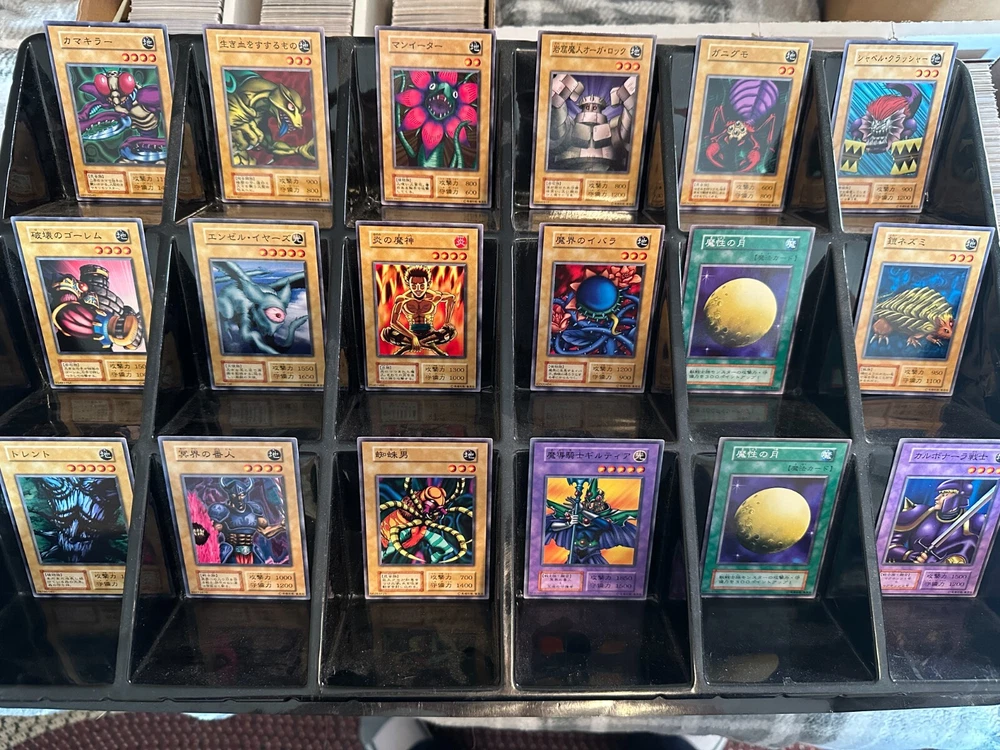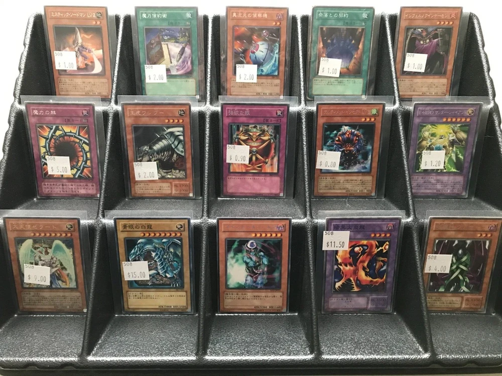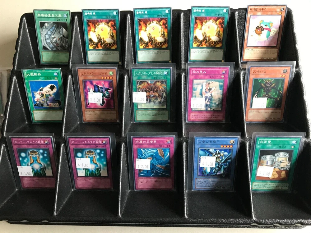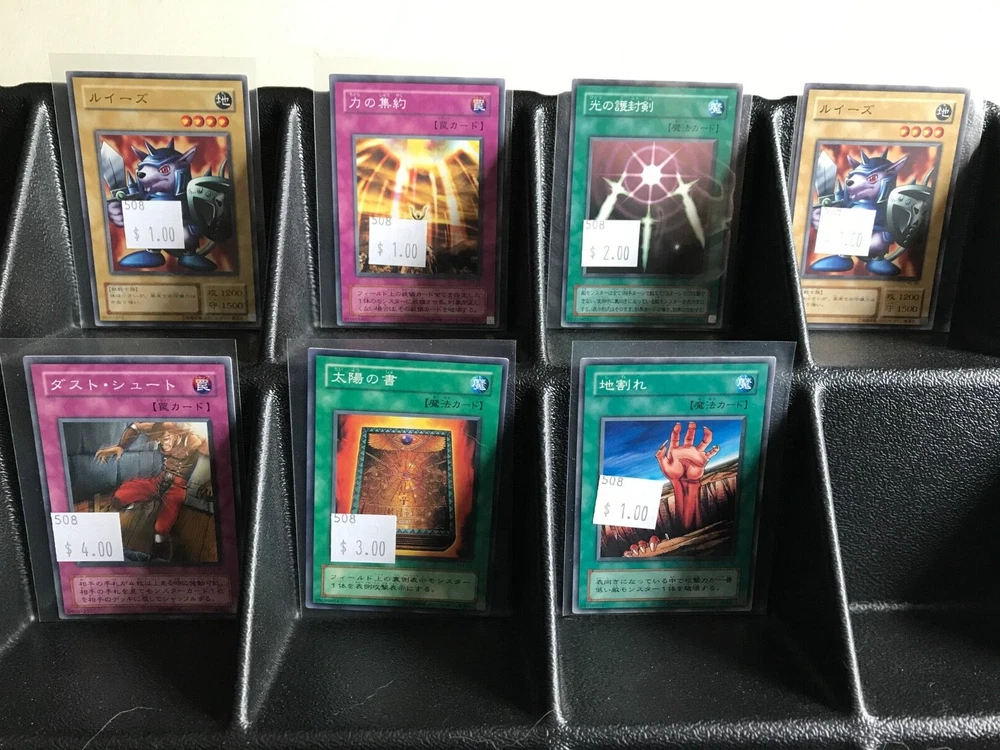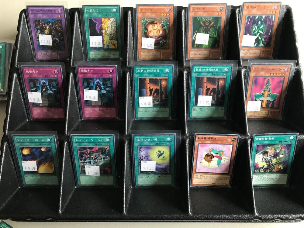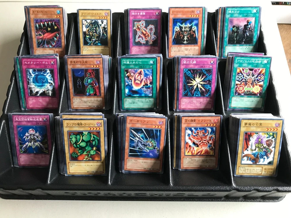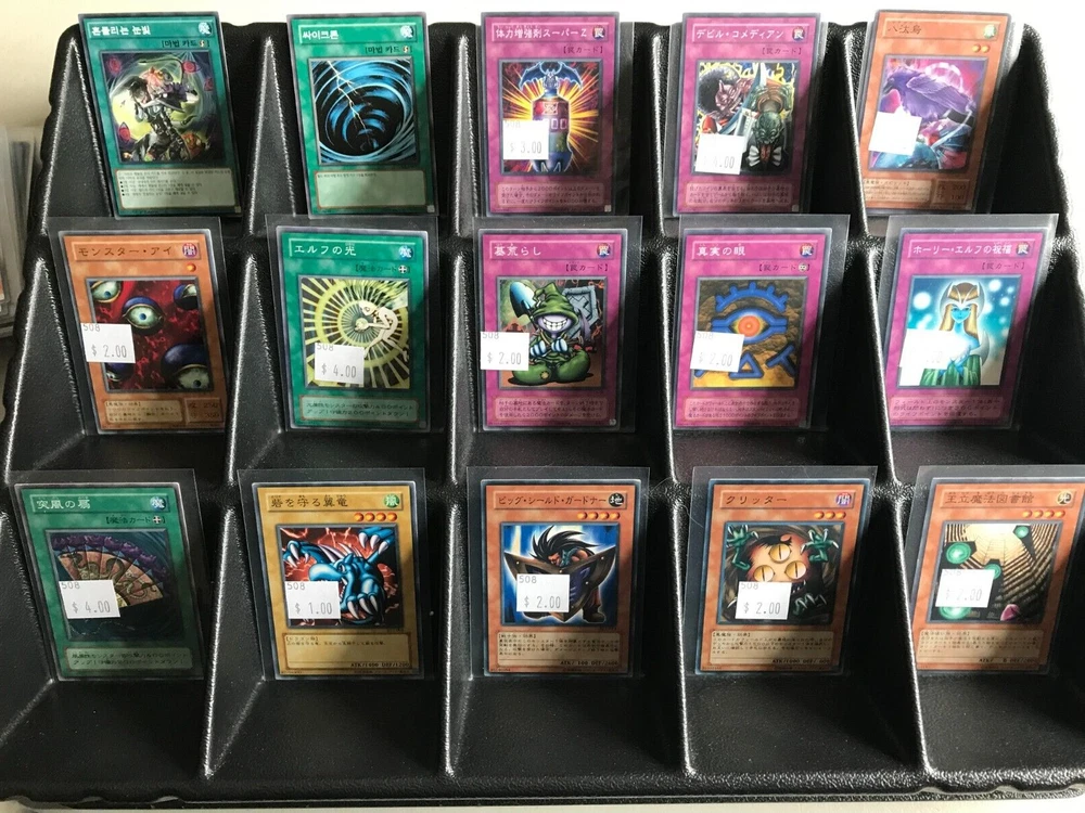 Big lot of Japanese YuGiOh cards. Could be other languages like Korean or Chinese mixed in? I can't read any of those languages and I am not an expert on YuGiOh. What you see is what you get I tried to take pictures of anything shiny/rare, and show a sample of the rest The spanish dark magician in the photo is NOT included, that was a mistake and is part of a different lot I am selling. But you get all of the other cards shown in the photos. Fills an 800 count box (probably closer to 1000 cards actually). 3lbs 12oz of cards (not counting packing) The last photo is all damaged cards, they are a free bonus. I recently added 46 more early Japanese cards. Series 1 / Series 2 before they started using card numbers. See photos
