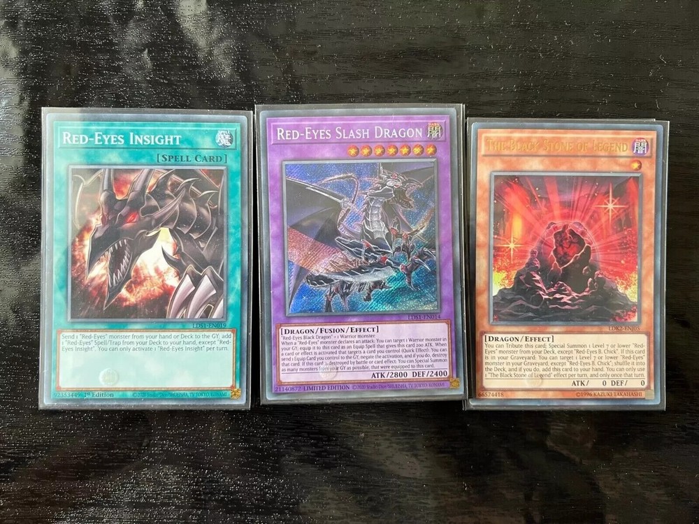 Hey guys I am new to Ebay so give me feedback or ask questions if your unsure about something. Happy Bidding!!! **Picture may have been edited due to Inventory Changes Please read description Below.** Shipping - All orders will be shipped with bubble mailer and a protective case. - I ship to both Domestic (U.S.) and International destinations! Payment - Please pay within 3 days of your order to avoid an Unpaid Item Case. This just helps me run things smoothly for other bidders/buyers and myself. Will appreciate if you please leave feedback when you receive your item, and I will leave feedback as well. Contact me if anything is wrong with your order so I can have a chance to fix the issue- Your satisfaction is most important! I am in grad school and I work full time so my items take a little longer to Ship! Please Allow me the Set Handling time before your item will be shipped! It may take the full handling time set Thank You!!! **If you are a international buyer, Customs Fees are the responsobility of the Buyer** A bonus for ordering you will also Get a Free Holo Card from my collection. It maybe Super Rare, Ultra Rare, or SECRET Rare!!! As a Bonus Gift for buying my auction you will Recieve a Bonus Free Holo Card. It can be Super Rare, Ultra Rare, or Secret Rare or even GHOST Rare!!! You will receive the following items: 40 CARD RED-EYES BLACK DRAGON DECK: Extra Deck Cards (15): 1x Red-Eyes Dark Dragoon (Ultra Rare) 1x Meteor Black Comet Dragon (Ultra Rare) 3x Red-Eyes Flare Metal Dragon (Ultra Rare) 1x Mecha Phantom Beast Dracossack (Ultra Rare) 1x Voloferniges, the Darkest Dragon Doomrider (Rare) 1x Expurrely Happiness (Super Rare) 1x Borrelend Dragon (Secret Rare) 1x Hieratic Seal of the Heavenly Spheres (Ultra Rare) 1x Red-Eyes Slash Dragon 1x Dharc then Dark Charmer, Gloomy (Ultra Rare) 1x Knightmare Unicorn (Ultra Rare) 1x Knightmare Phoenix (Ultra Rare) 1x Striker Dragon (Ultra Rare) Monster Cards (22): 1x Red-Eyes Black Fullmetal Dragon (Ultra Rare) 3x Red-Eyes Black Meteor Dragon (Super Rare) 3x Red-Eyes Black Dragon (Ultra Rare) 3x Red-Eyes Soul (Ultra Rare) 3x Red-Eyes Darkness Metal Dragon 3x Black Metal Dragon 1x The Black Stone of Legend (Ultra Rare) 1x Metalflame Swordsman (Ultra Rare) 1x Metal Illusionist (Super Rare) 1x Metalzoa X (Super Rare) 1x Zoa the Fiendish Beast 1x Dark Magician (Ultra Rare) Spell Cards (15): 3x Red-Eyes Insight (Secret Rare) 3x Return of the Dragon Lords (Ultra Rare) 3x Incoming Machine! (Super Rare) 1x Allure of Darkness (Ultra Rare) 1x Cards of the Red Stone 1x Inferno Fire Blast 3x Red-Eyes Fusion Trap Cards (3): 1x Max Metalmorph 1x Flame Coating Metalmorph 1x Red-Eyes Spirit