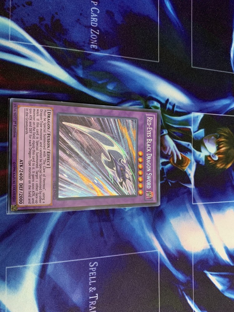 Yugioh DRL2-EN012 1st Edition Red Eyes Black Dragon Sword Secret Rare. Condition is "Used". Shipped with eBay Standard Envelope for Trading Cards, Stamps, Postcards & Coins up to $20.