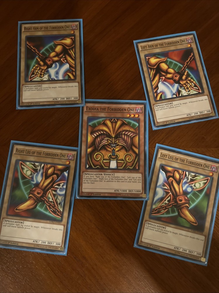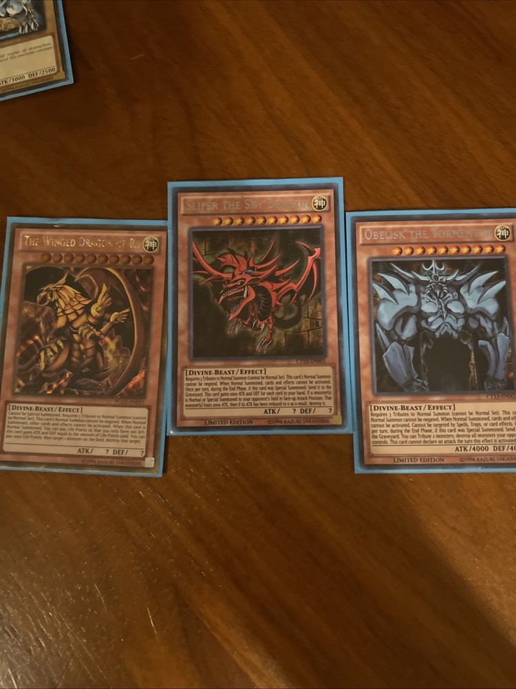 Egyptian trio, rah is pgld, slifer and obelisk are cti3 The dragons are lckc, sddc, and ldk2 All five pieces of Exodia are ldk2