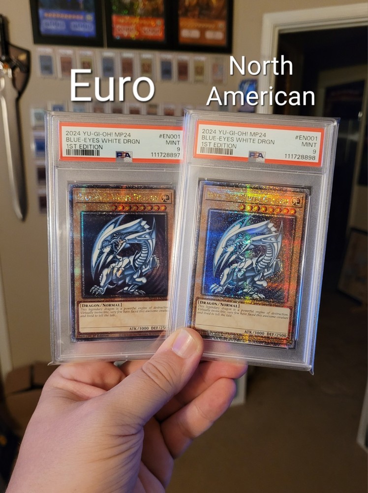 Yugioh Blue-Eyes White Dragon from the set 2024 Mega Tins in QCR. This is a EURO print. The vanilla border is slightly darker than a NA print as well as the foiling pattern is not as bright as a NA print. The slab will be shipped in a slab sleeve packed neatly in a bubble mailer with tracking.