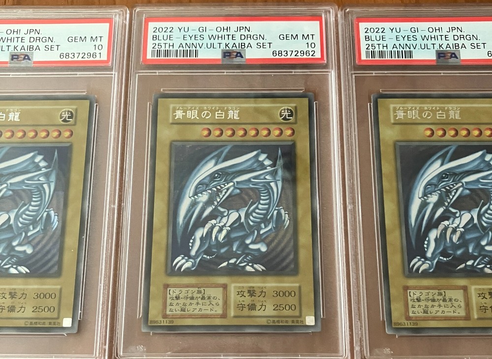 Yu-Gi-Oh Japanese 25th Anniversary Ultimate Kaiba Set Blue-Eyes White Dragon Set of 3 PSA 10 GEM MINT PSA graded cards Condition: NEW " what you see in the picture is what you'll be getting " This is for (3) 2022 Yu-gi-oh Japanese 25th Anniversary Ultimate Kaiba Set Blue-Eyes White Dragon PSA 10. Items will be shipped in a cardboard box. SHIPPING AND HANDING: Free w/tracking number(Domestic only) ( All International orders will be sent by Global Shipping Program NO EXCEPTION ) NO RETURNS
